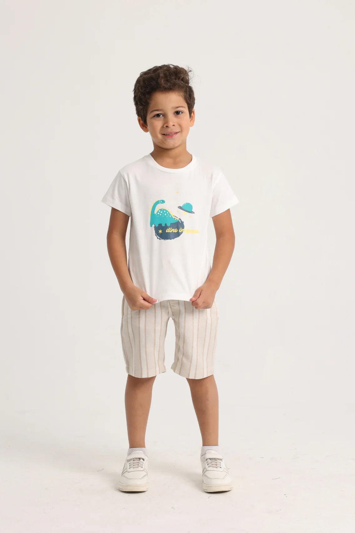 Boys Cotton T-Shirt – Beige with Dinosaur Print
