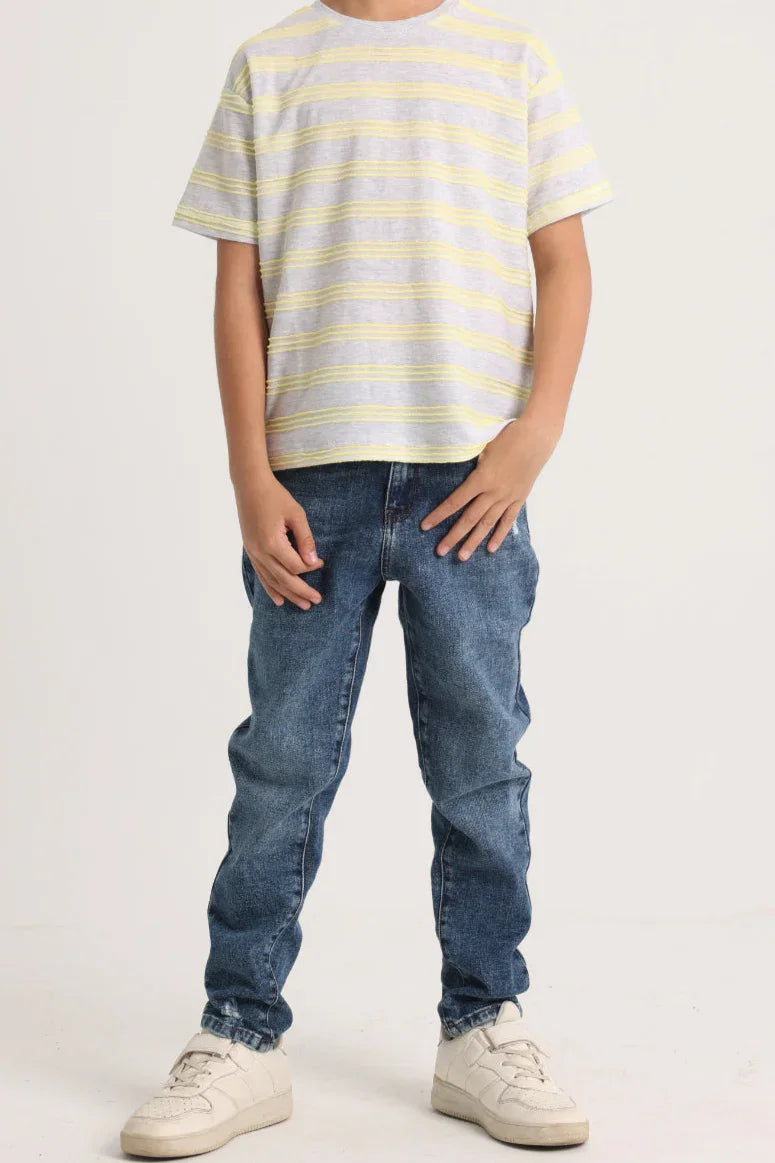 Boys Short-Sleeved T-Shirt – Grey and Yellow Striped