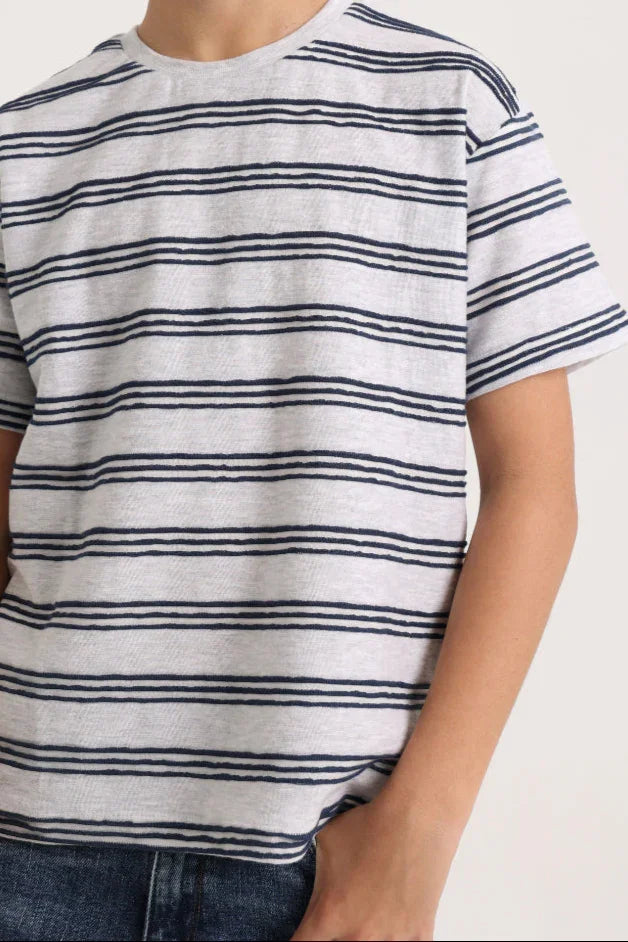 Boys Short-Sleeved T-Shirt – Grey and Indigo Striped