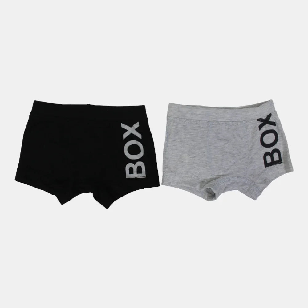 Soft, breathable, and perfect for all-day comfort! This set of two cotton boxer shorts in black and gray offers a snug fit and flexibility for active boys.
