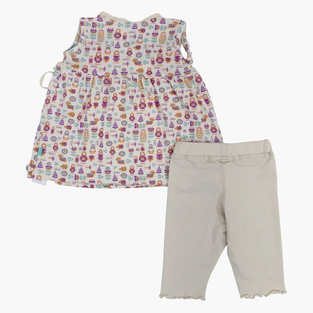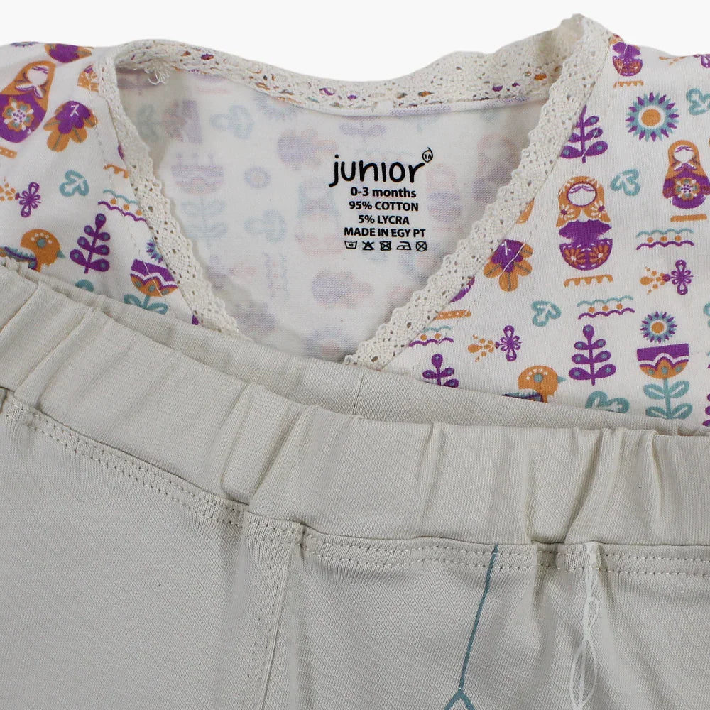 Baby Girls Cotton Pajama Set – Beige with Floral Print