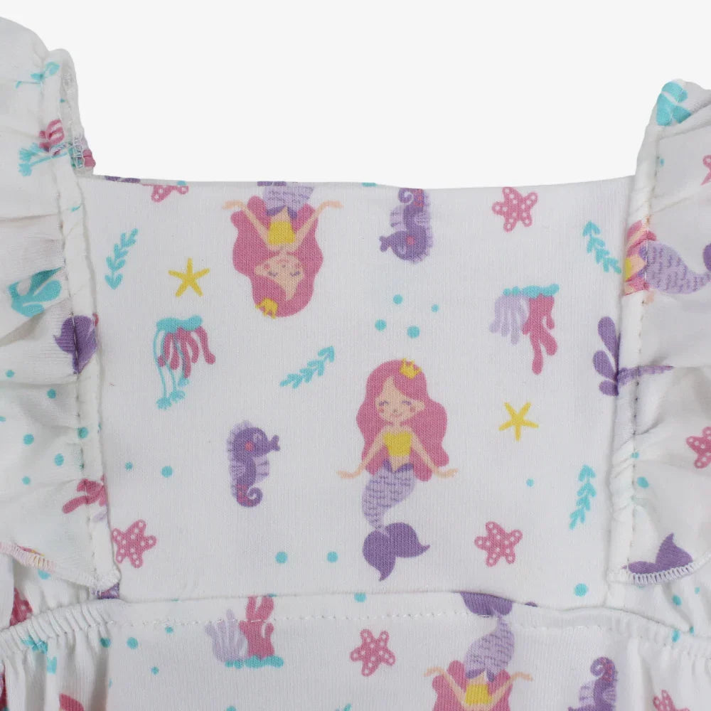 Baby Girls Cotton Romper – Off-White with Mermaid Design