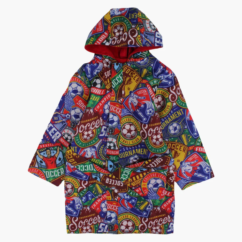 Boys Swim Robe – Blue with Soccer Print