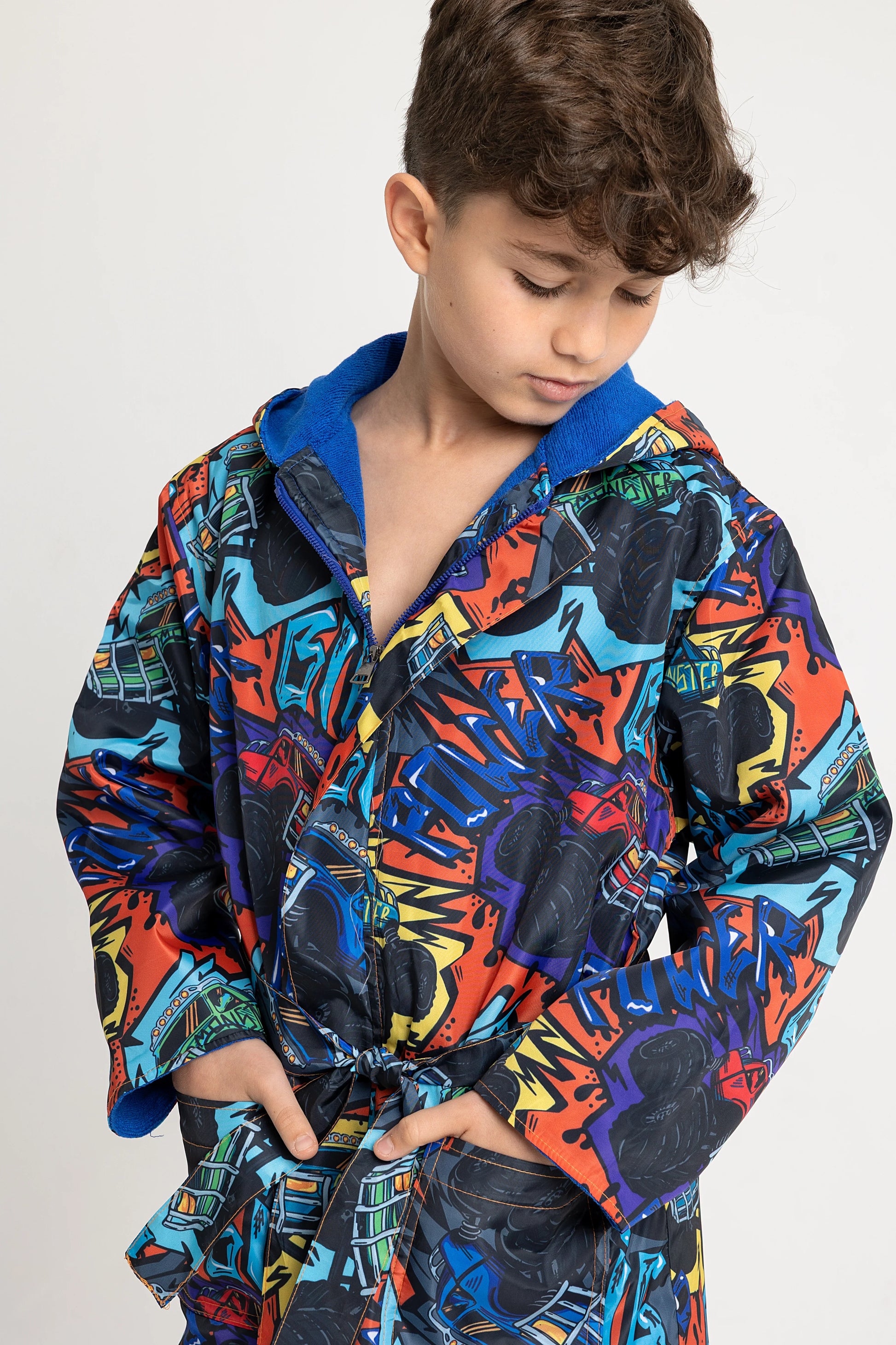 Boys Waterproof Swim Robe – "Monster Truck" Design