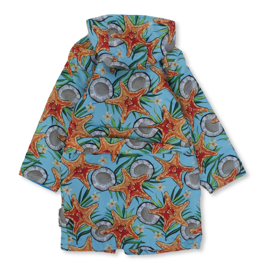 Unisex kids Swim Robe Waterproof – Aqua with Starfish Design