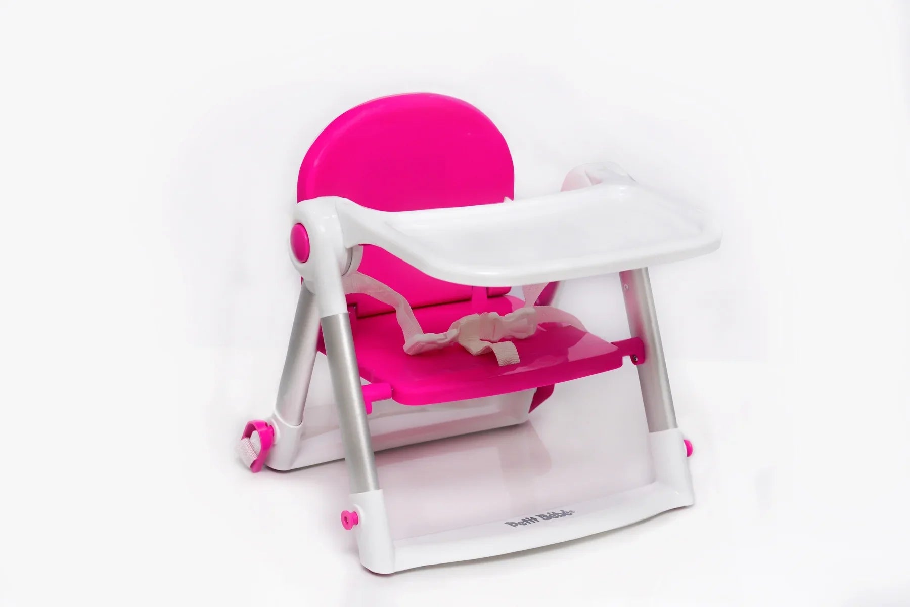 Make mealtime enjoyable and safe with the Petit Bebe High Chair Booster in Pink. This lightweight and foldable high chair combines functionality and style, making it perfect for both home and travel. Its adjustable features and secure design ensure comfort and safety for your baby, while its compact build makes storage a breeze.