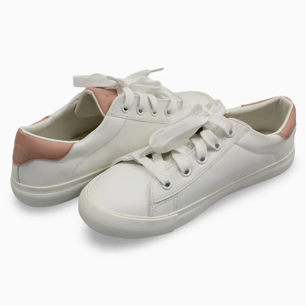Soft and sweet, these white and dustypink shoes are ideal for everyday elegance.