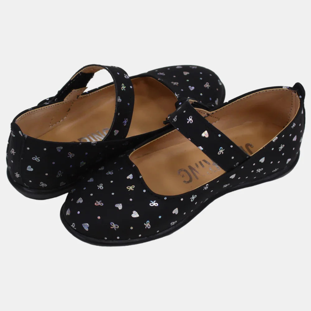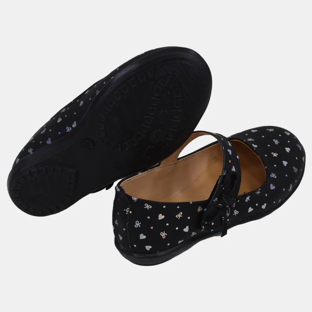 Baby Girls Leather Shoes – Black with Heart Details
