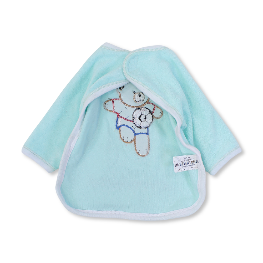 Cotton Baby Bib – Aqua with Teddy Bear Embroidery