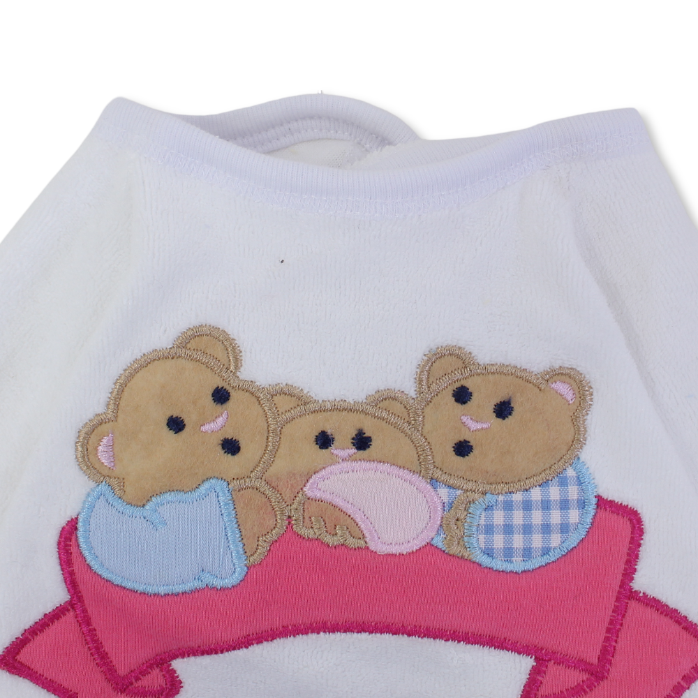 Cotton Baby Bib – White with 3 Teddies Bear Embroidery
