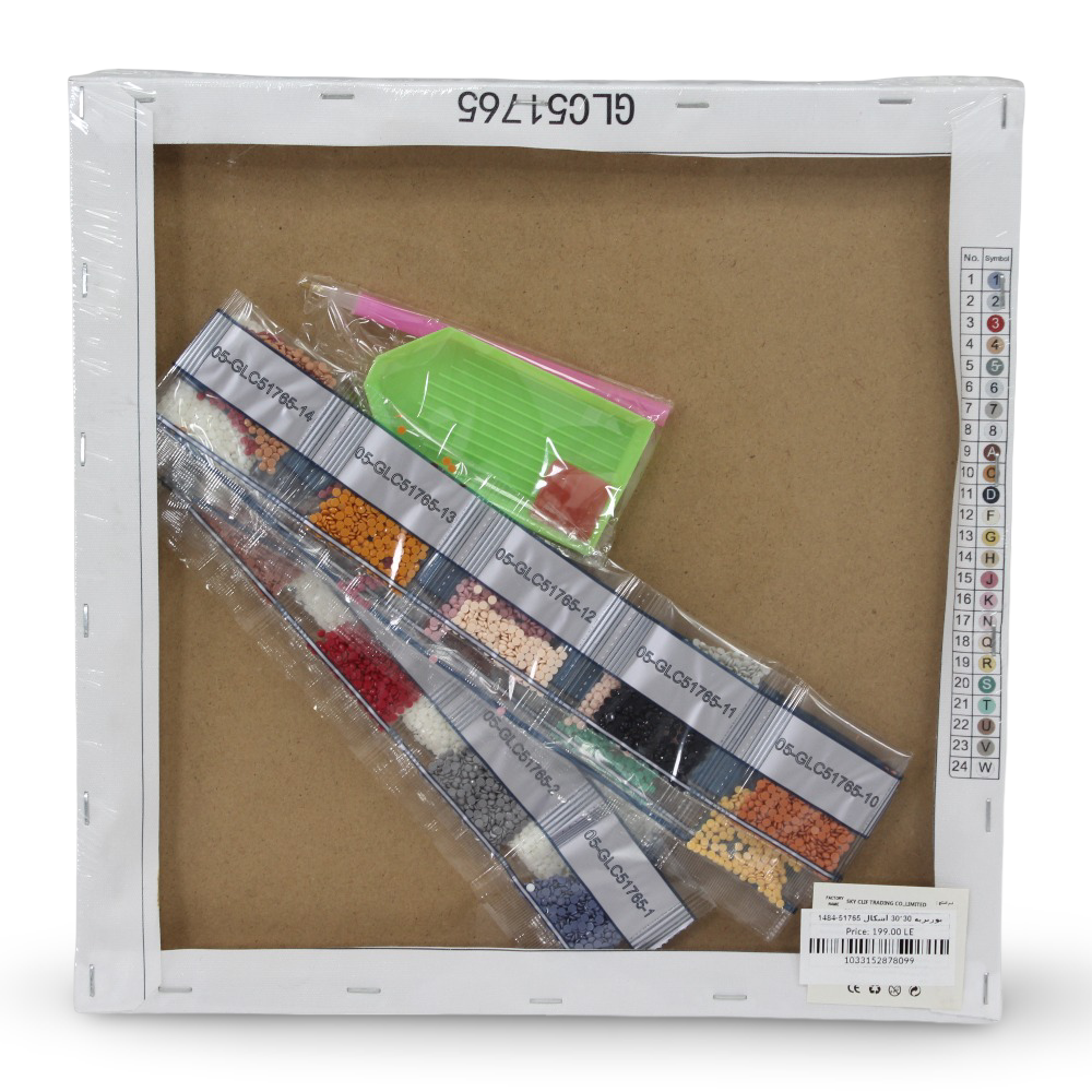 • Complete diamond painting kit → includes canvas, colorful beads, tray, and tools