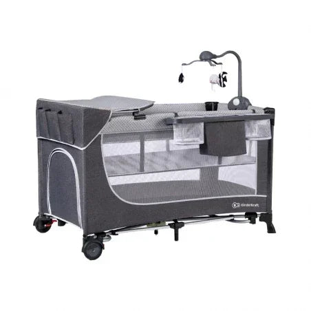 The Kinderkraft Camping Bed Leody with Accessories – Gray offers comfort, functionality, and peace of mind wherever you and your baby go.