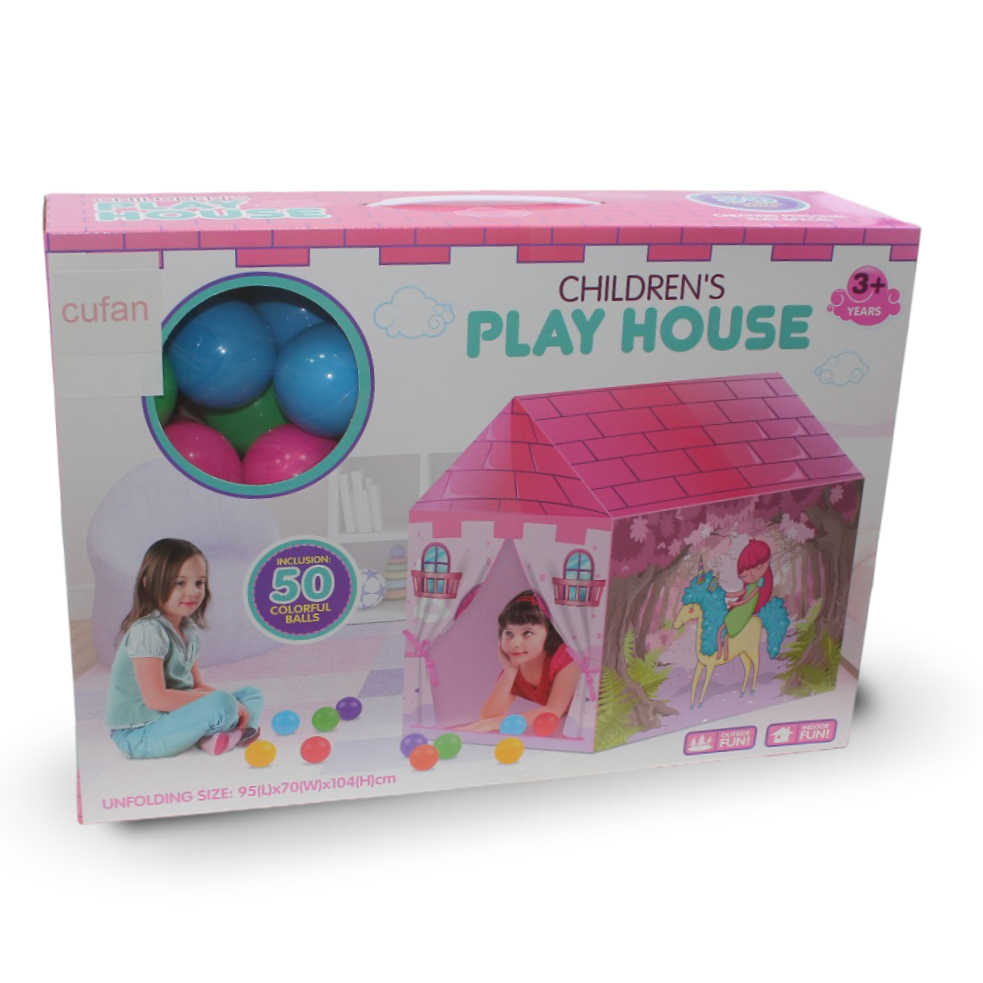 Turn playtime into a magical adventure with this charming play house! Designed like a fairytale castle, it provides a safe and cozy space where kids can play, imagine, and explore. The set also includes 50 colorful plastic balls for extra fun and creativity.