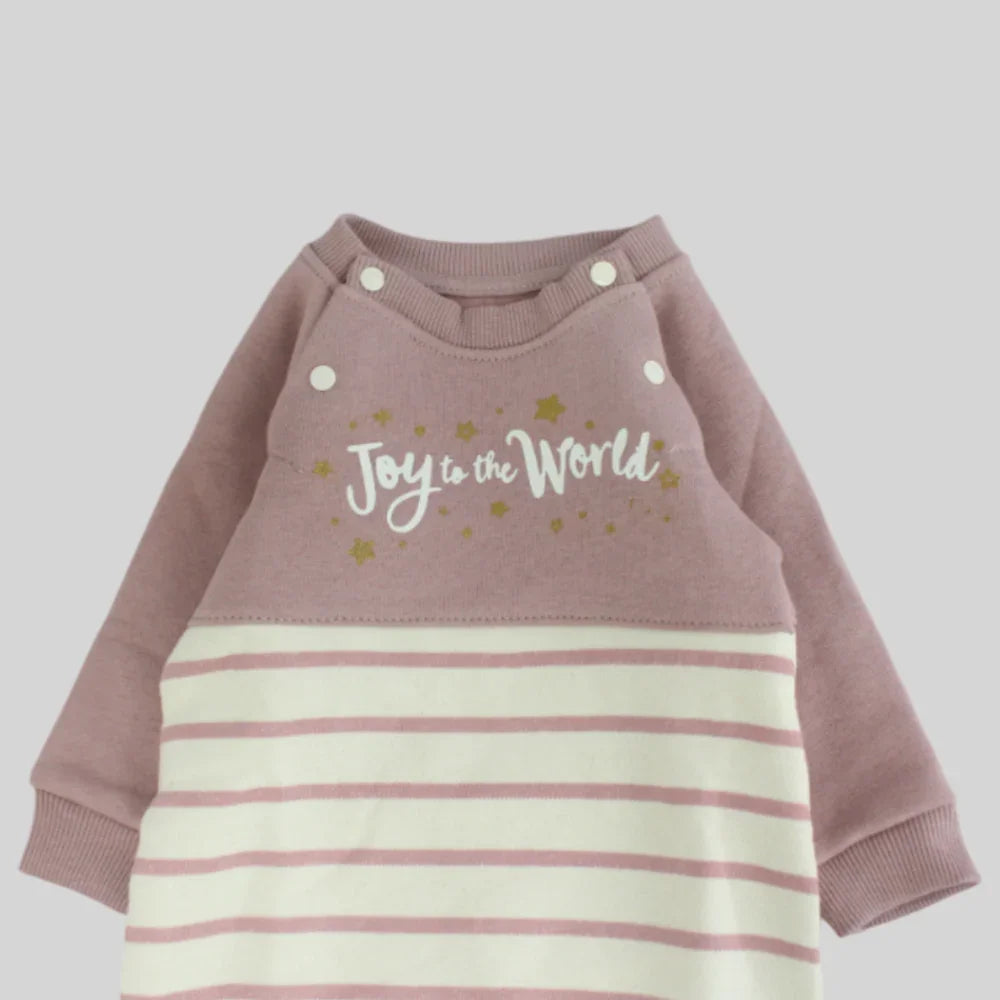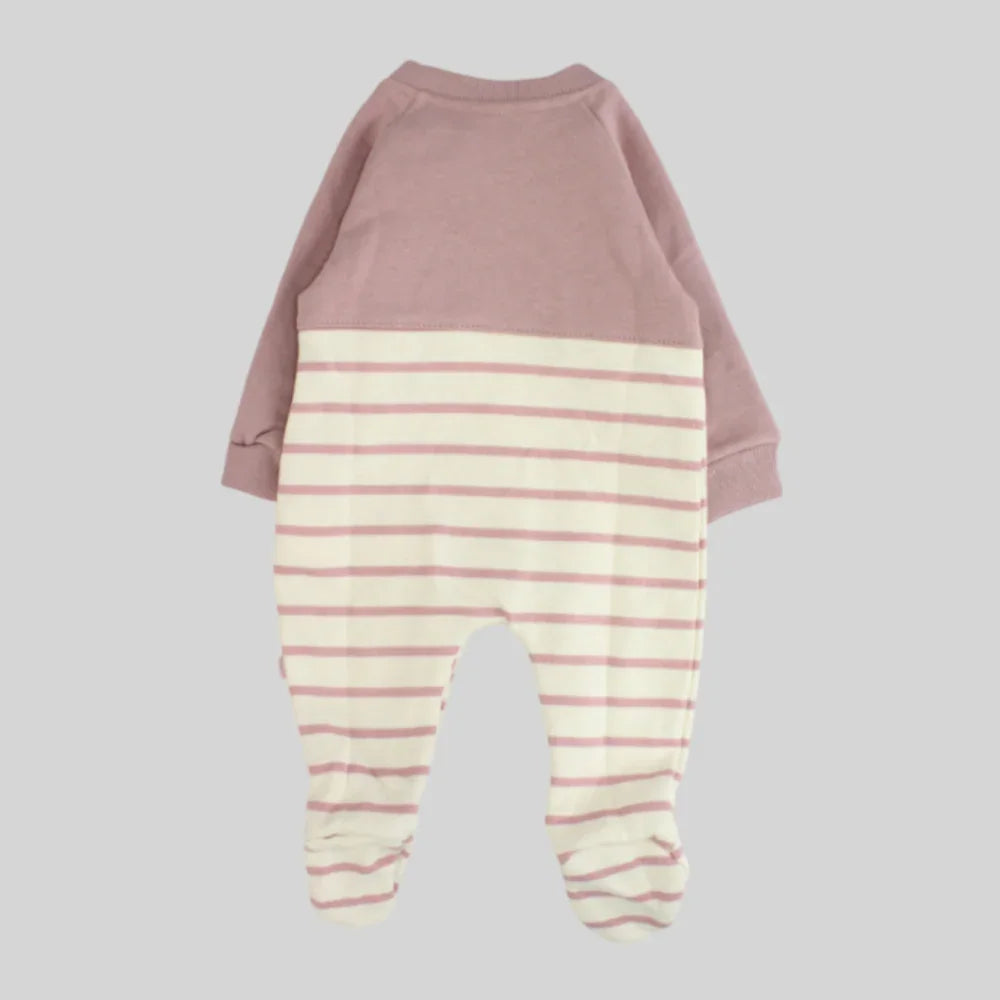 Keep your little one cozy for the day or nighttime in this soft and comfortable onesie. The snap buttons make dressing up and diaper changing easier, and the long sleeves and built-in socks are ideal for colder days.