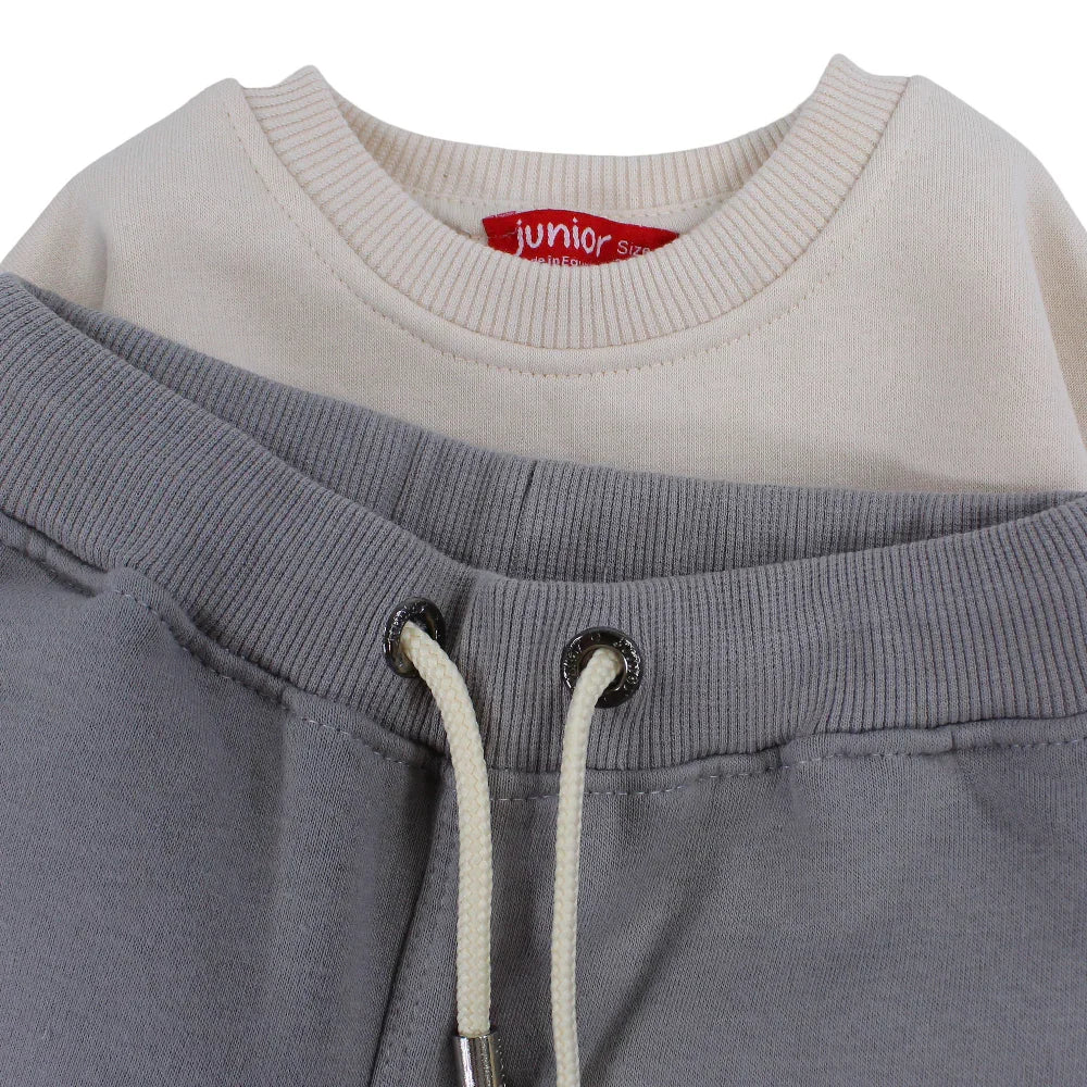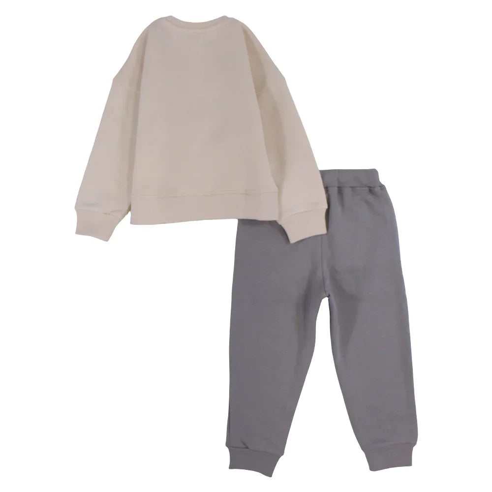 Girls Cotton Pajama Set – Beige with Bunny and Balloon Design