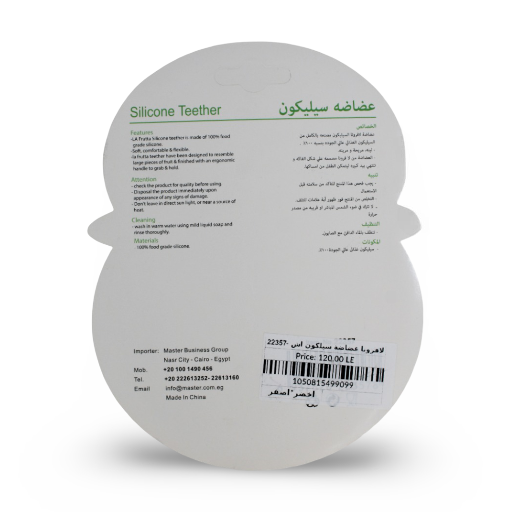• Fruit-shaped textured surface → helps massage sore gums and reduce discomfort