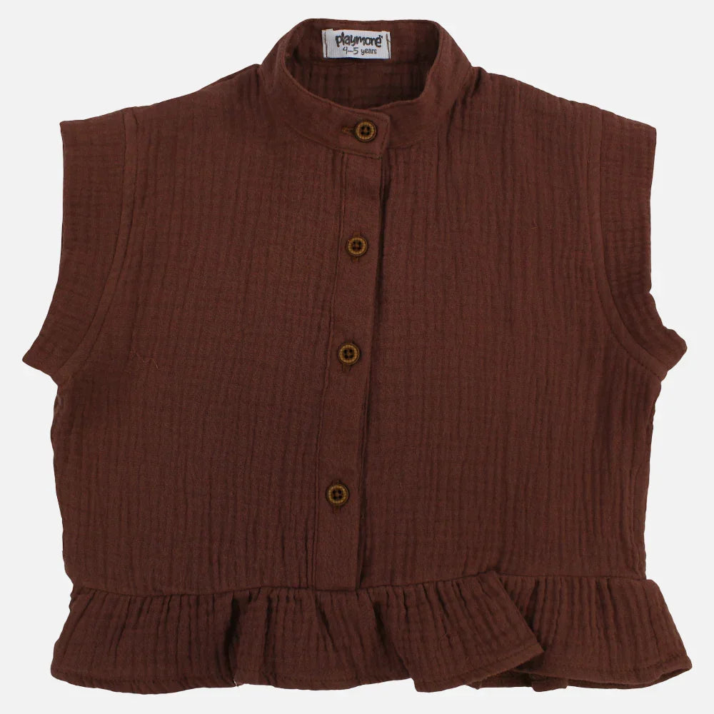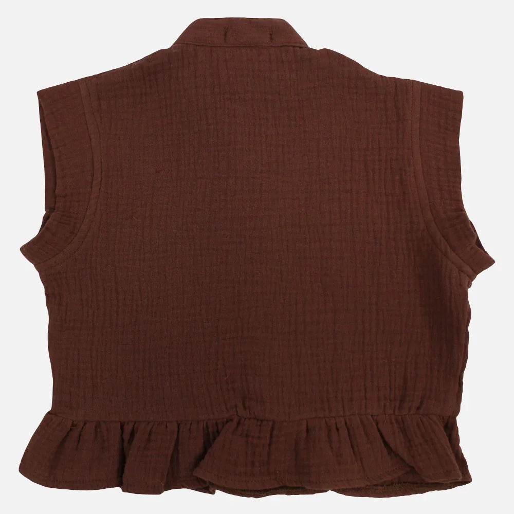 Light, breezy, and made for sunny days! This brown sleeveless blouse is a sweet and simple piece for your little girl’s wardrobe.