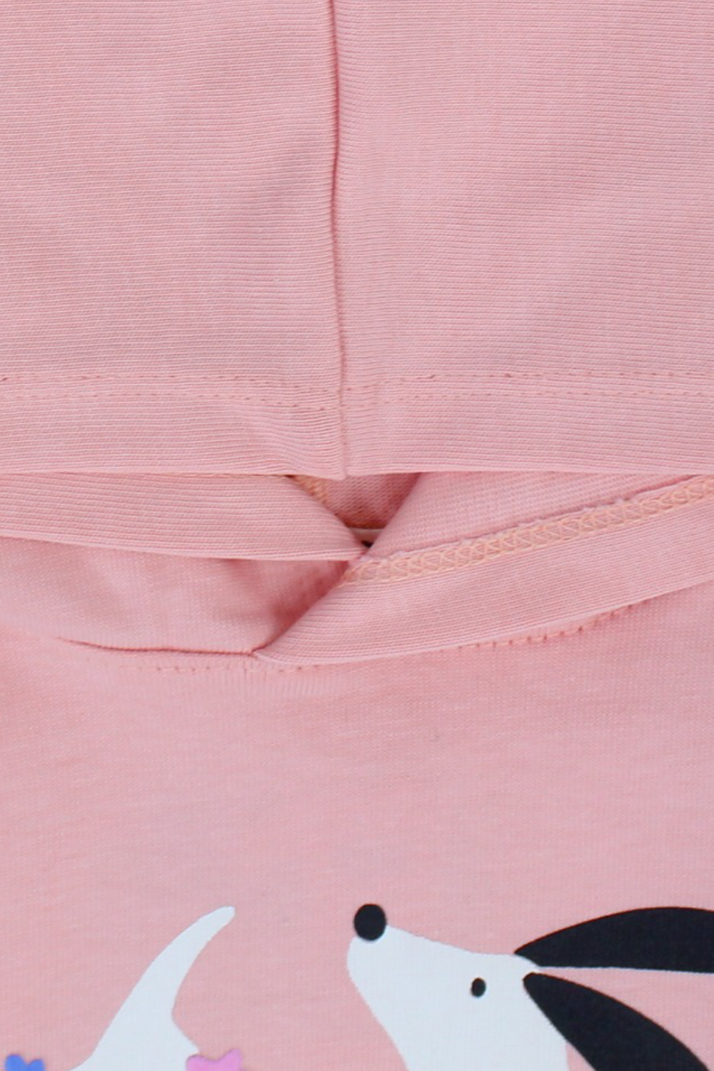 Baby Girls Cotton Hooded T-Shirt – Salmon with "Always Happy" Dog Print