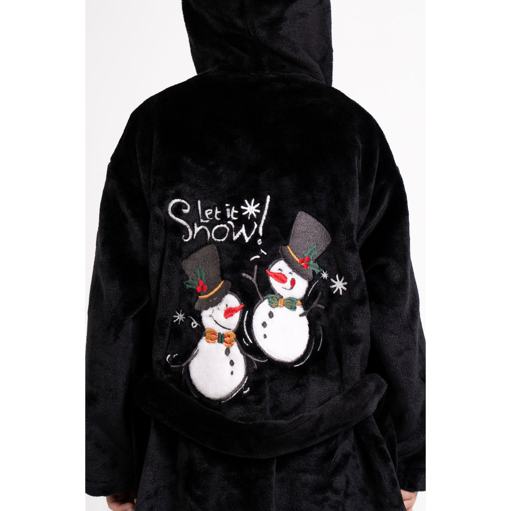 Soft, luxurious & perfect for chilly days – a velvet robe in classic black, featuring a festive “Let It Snow” design