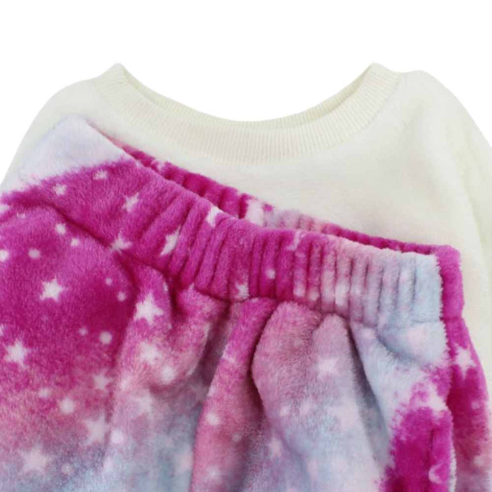 A warm and cozy fleece pajama set designed to keep little girls snug, comfortable, and happy during colder nights.