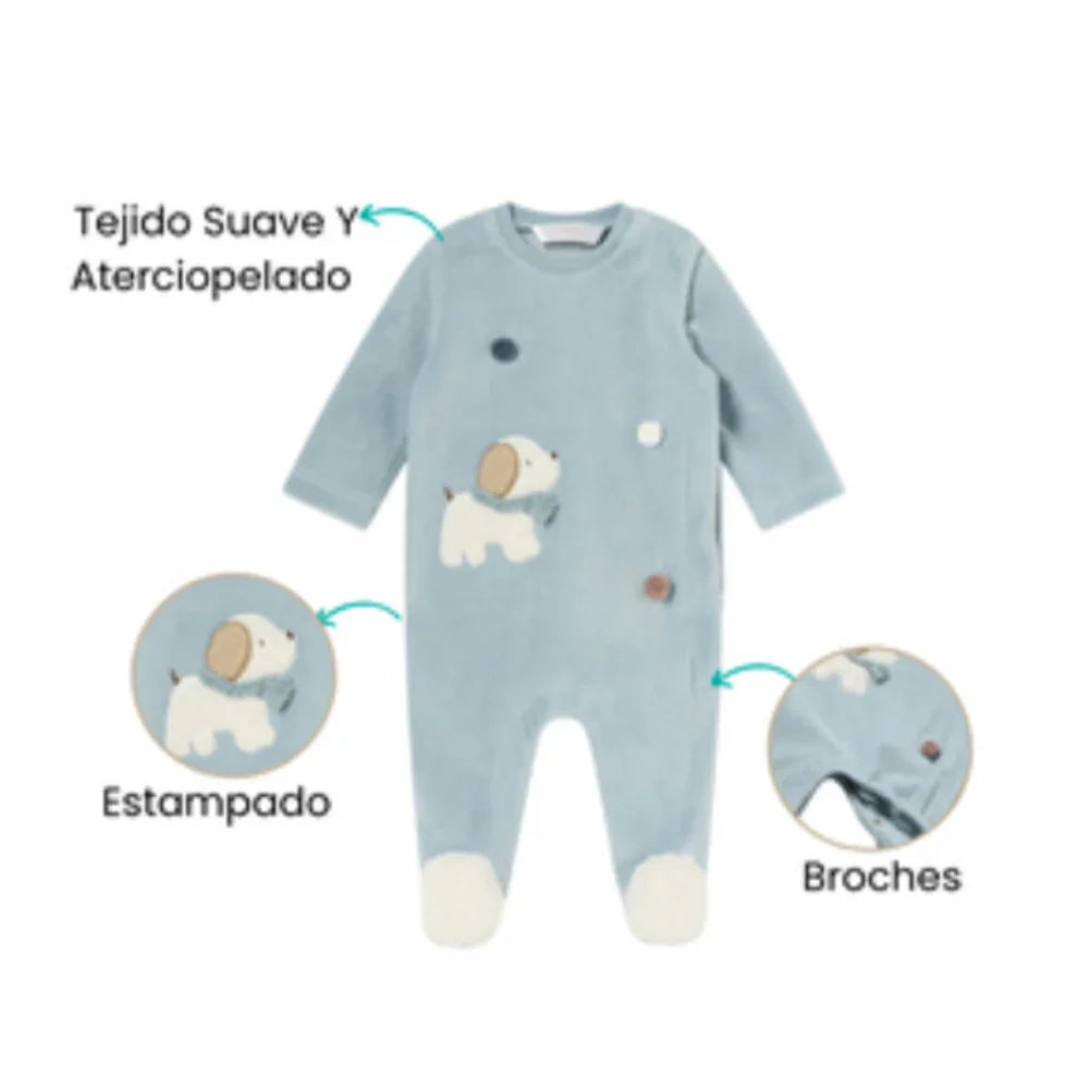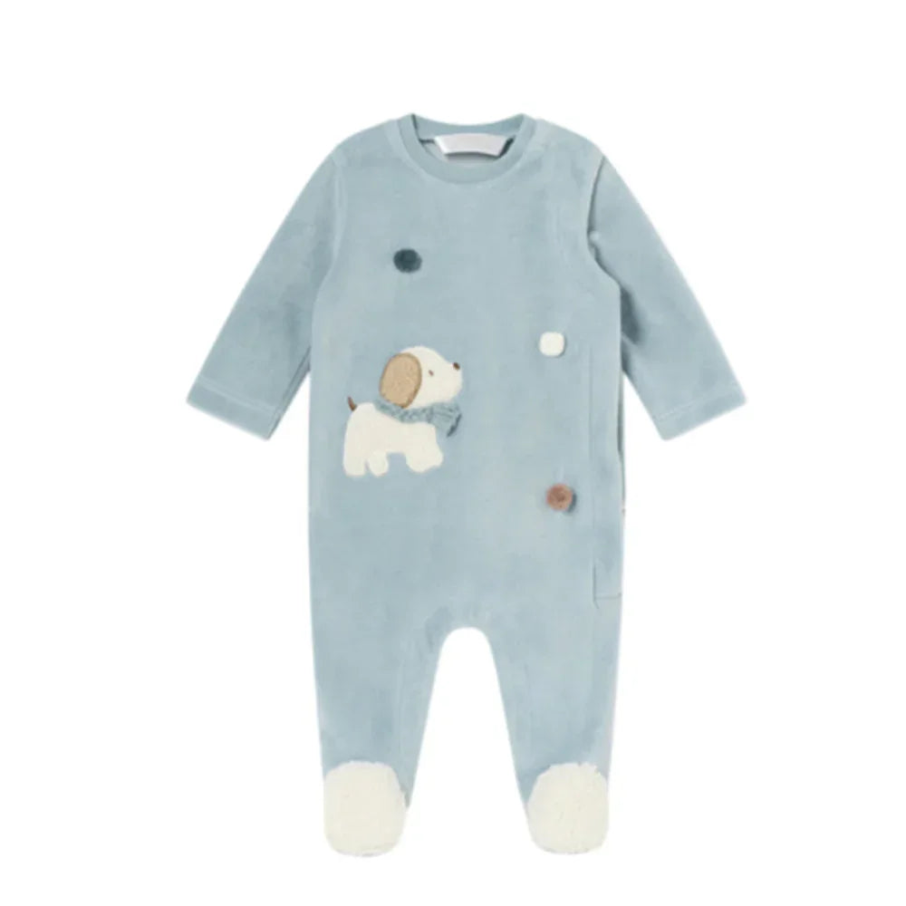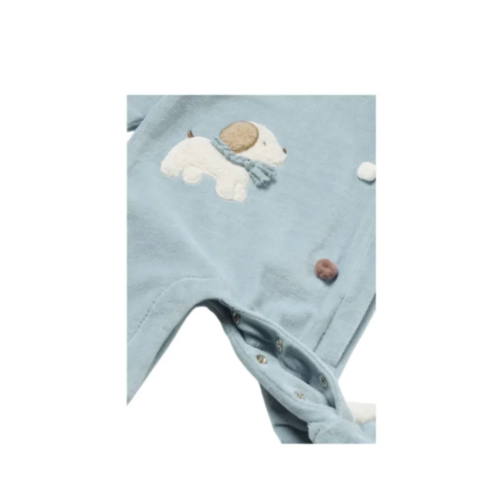 Baby Boys Velvet Baby Footie - Dog Embroidery