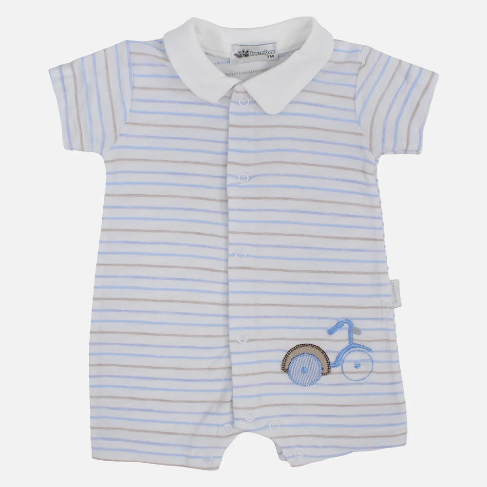 Baby Boys Cotton Romper - Striped with Bicycle Print