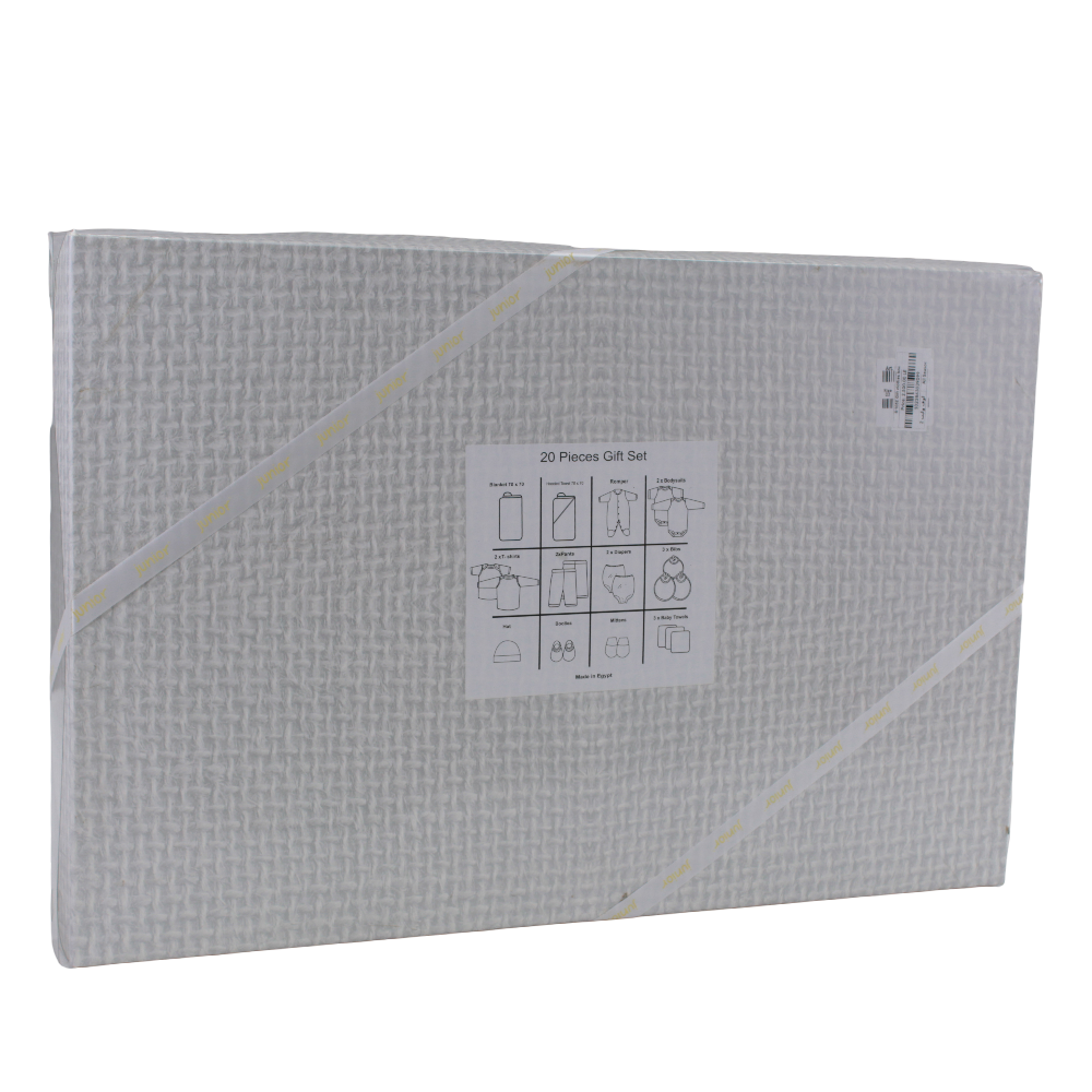 • Complete 20-piece essentials set — includes bodysuits, bibs, beanie, mittens, footies, and more