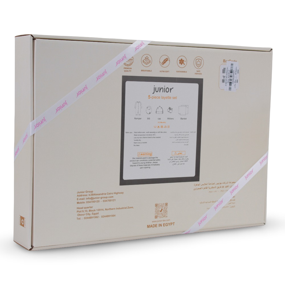 • Includes 5 matching pieces → bodysuit, pants, hat, bib, and mittens