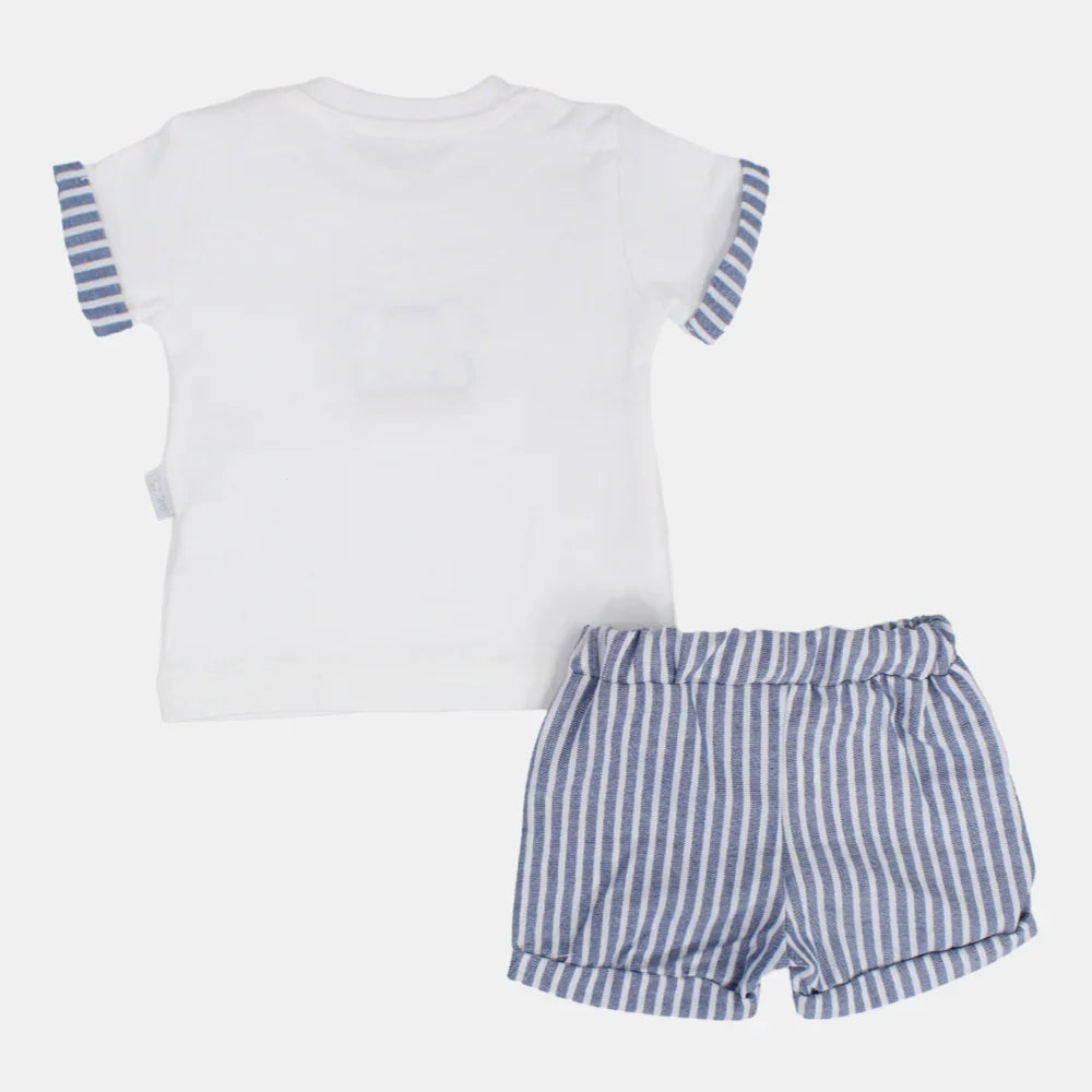 This baby boys' short-sleeved outfit set is perfect for sunny days and playful moments. Featuring an adorable puppy head design, it’s made from soft, breathable cotton to keep your little one cool and comfy all day.