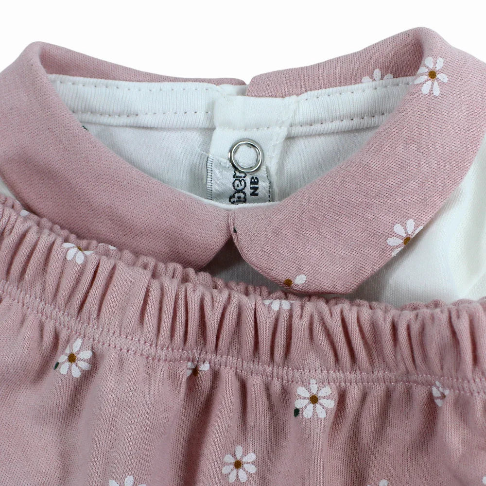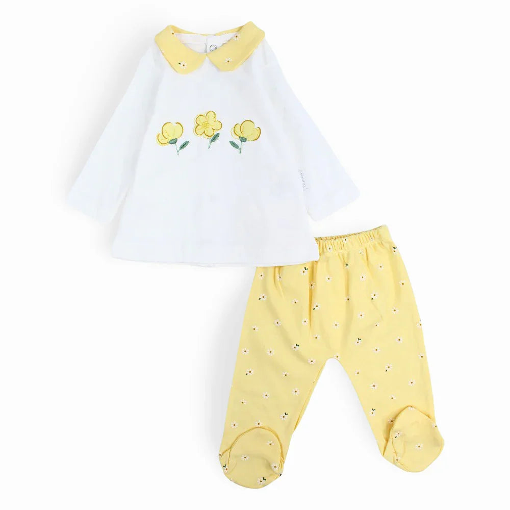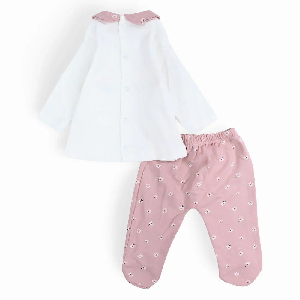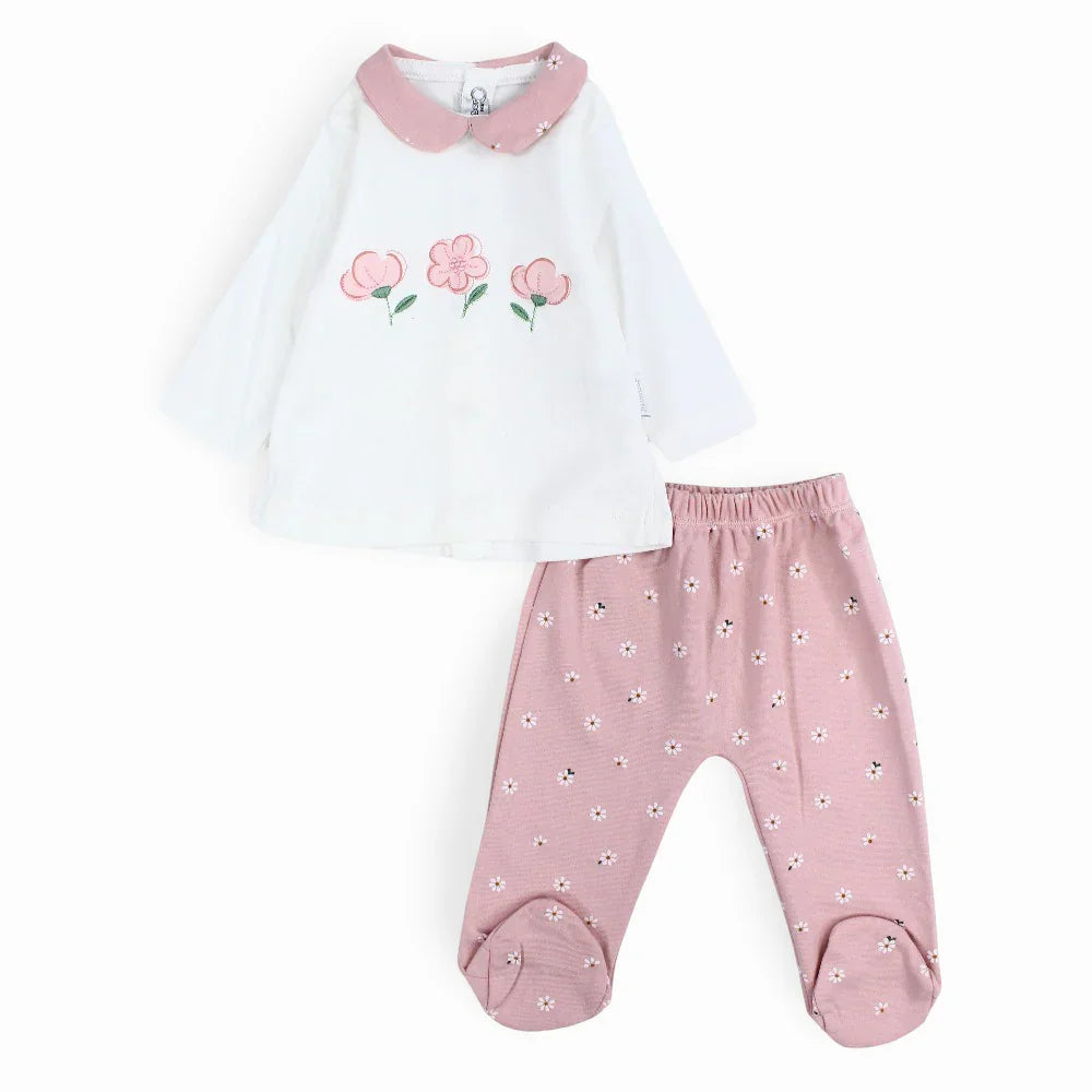 Baby Girls Cotton Pajama Set - Flowers Embroideries