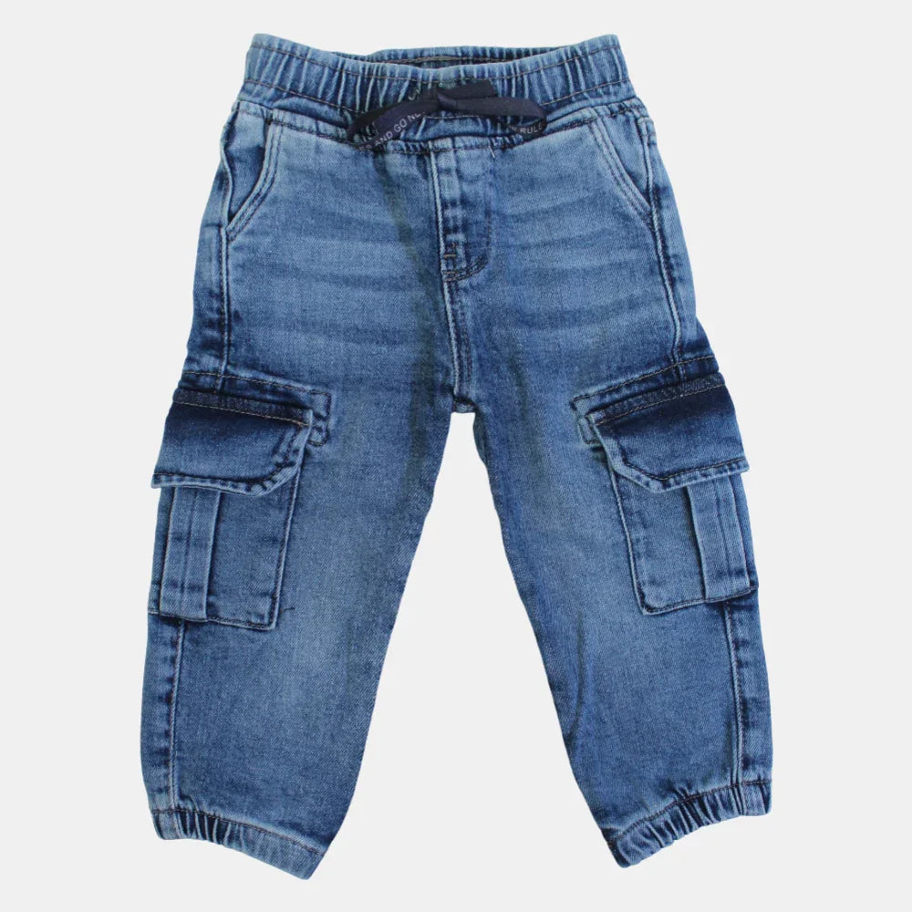 Comfort meets style for little explorers! These light-wash denim cargo jeans are designed for all-day comfort, offering a soft feel and a classic look for your baby boy.
