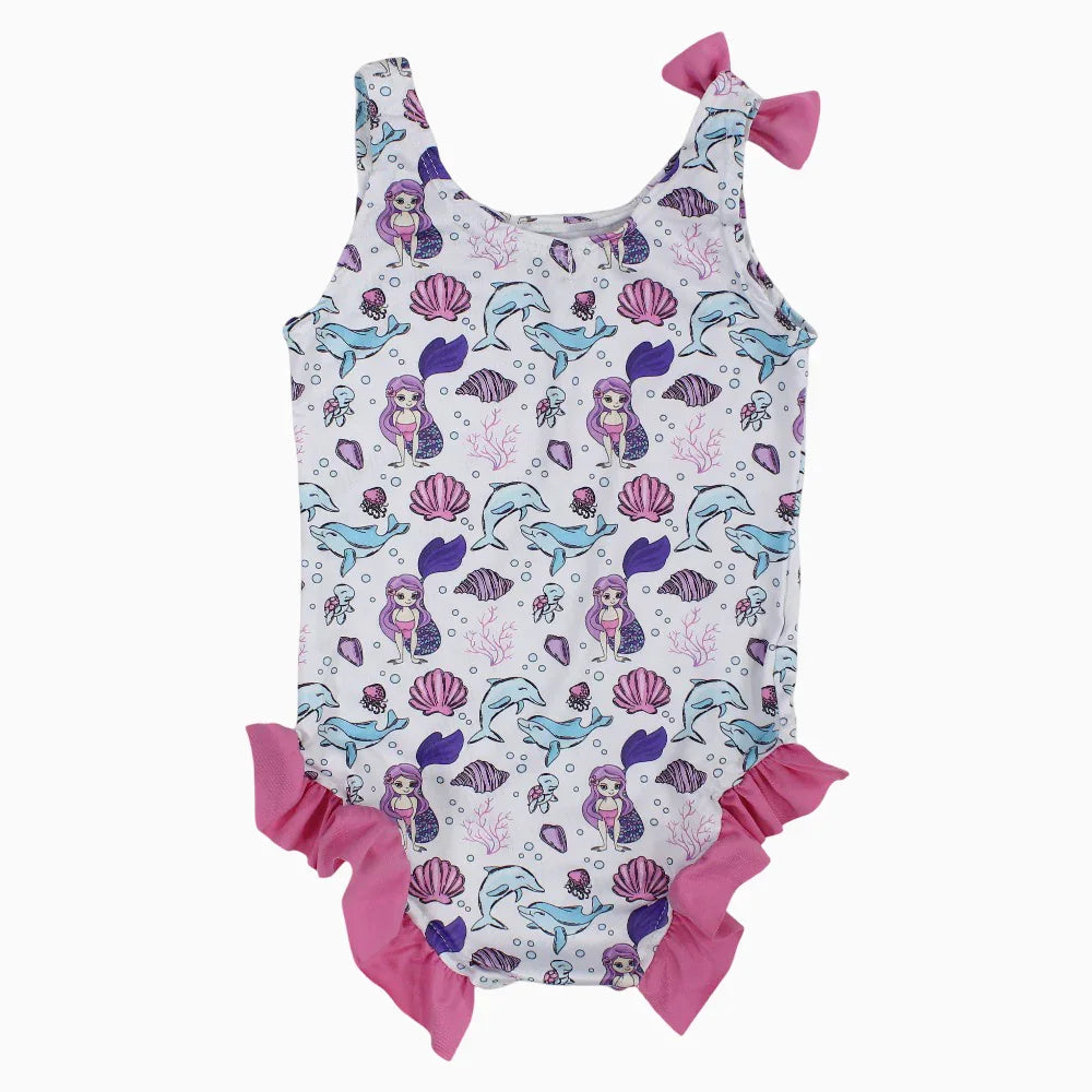 Girls Swimsuit - White with Under the Sea Print