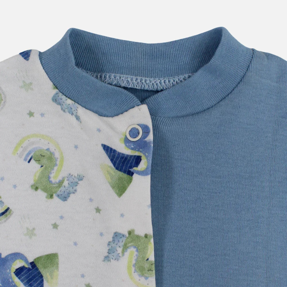 Baby Boys Cotton Romper - Light Blue with Dinosaur Print
