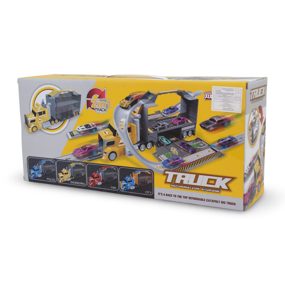 • 2-in-1 design includes a city truck and 4 mini cars for complete play