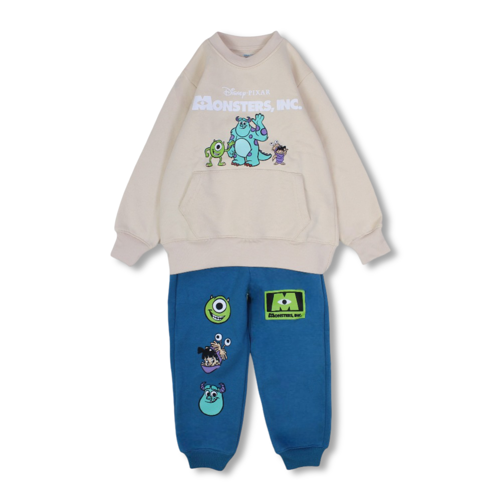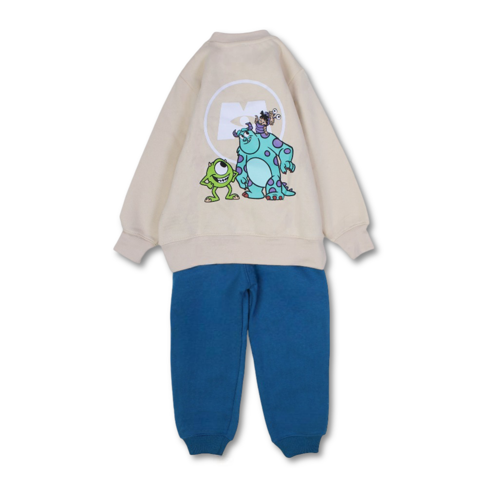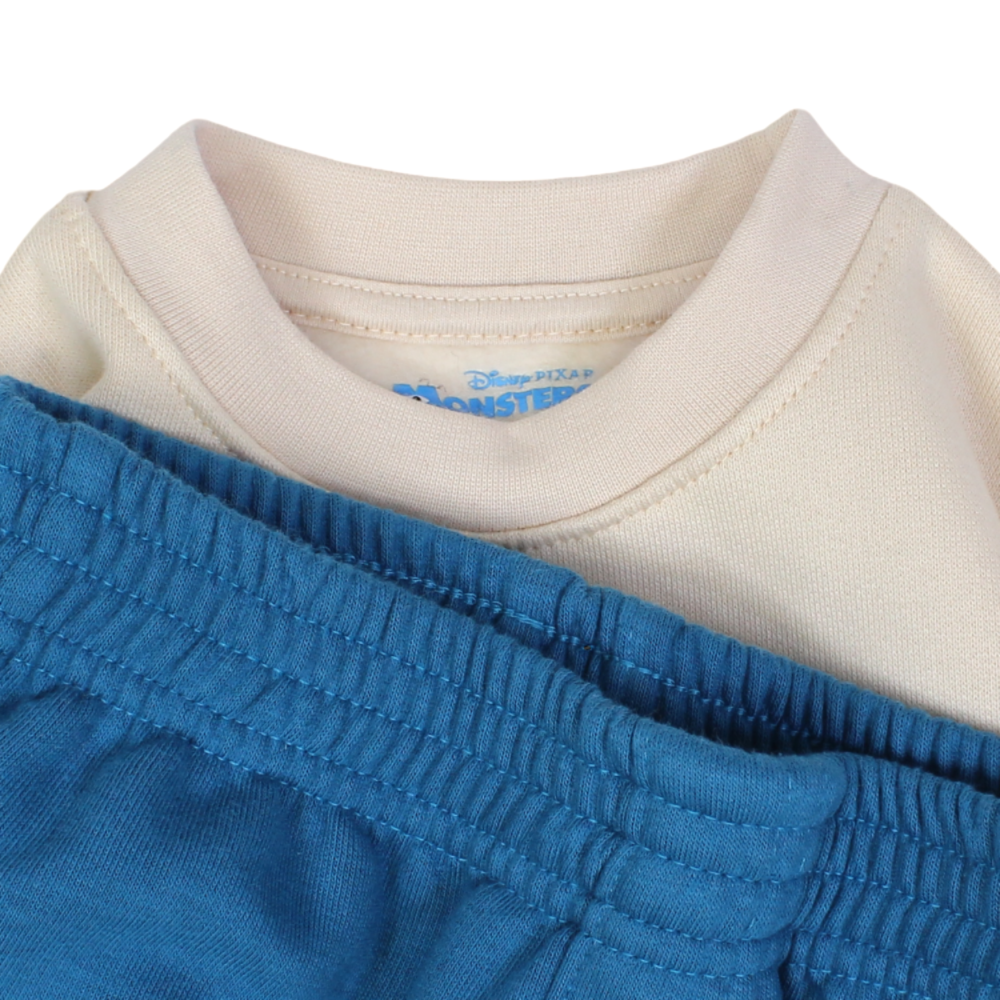 Boys Cotton Pajama Set – Beige/Blue with Monsters Inc. Design