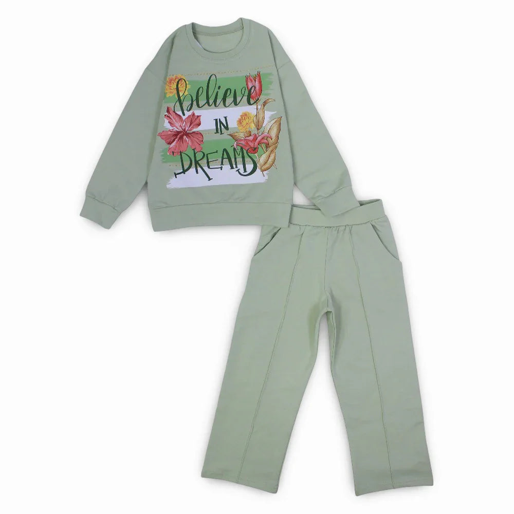 Girls Cotton Pajama Set - "Believe in Dreams" Print