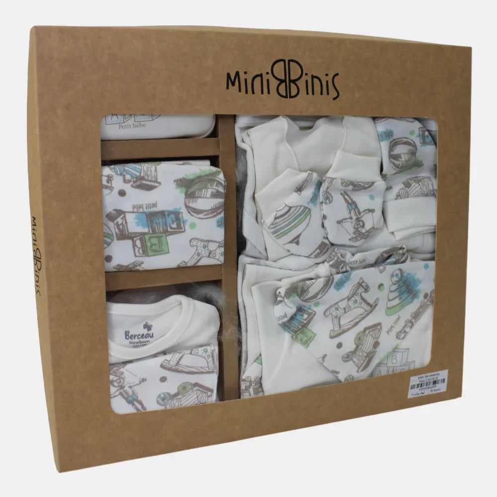 A charming and practical gift set for baby boys, this off-white clothes box from Petite Bebe is perfect for everyday wear or as a thoughtful present for newborns. Made from soft cotton for ultimate comfort, it ensures your little one stays cozy and stylish.