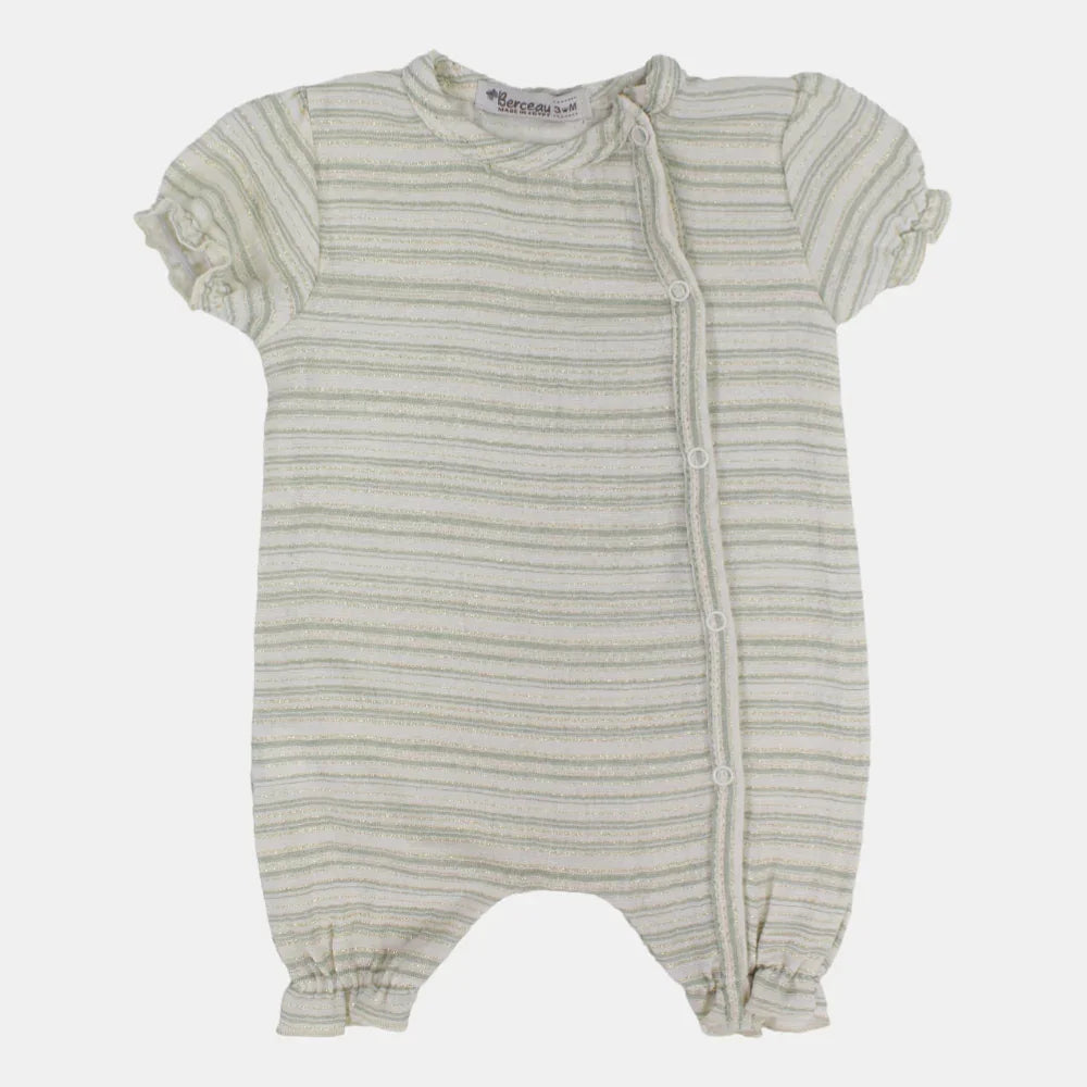 Baby Girls Linen Romper – Striped with Short Sleeves