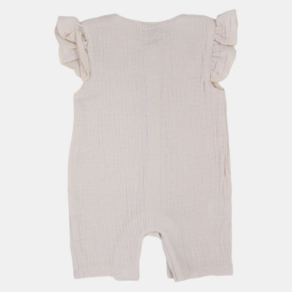 This charming Baby Girls Romper is the perfect blend of comfort and style. Made from soft cotton, it features a classic wooden button detail, adding a touch of rustic charm to this easy-to-wear outfit.