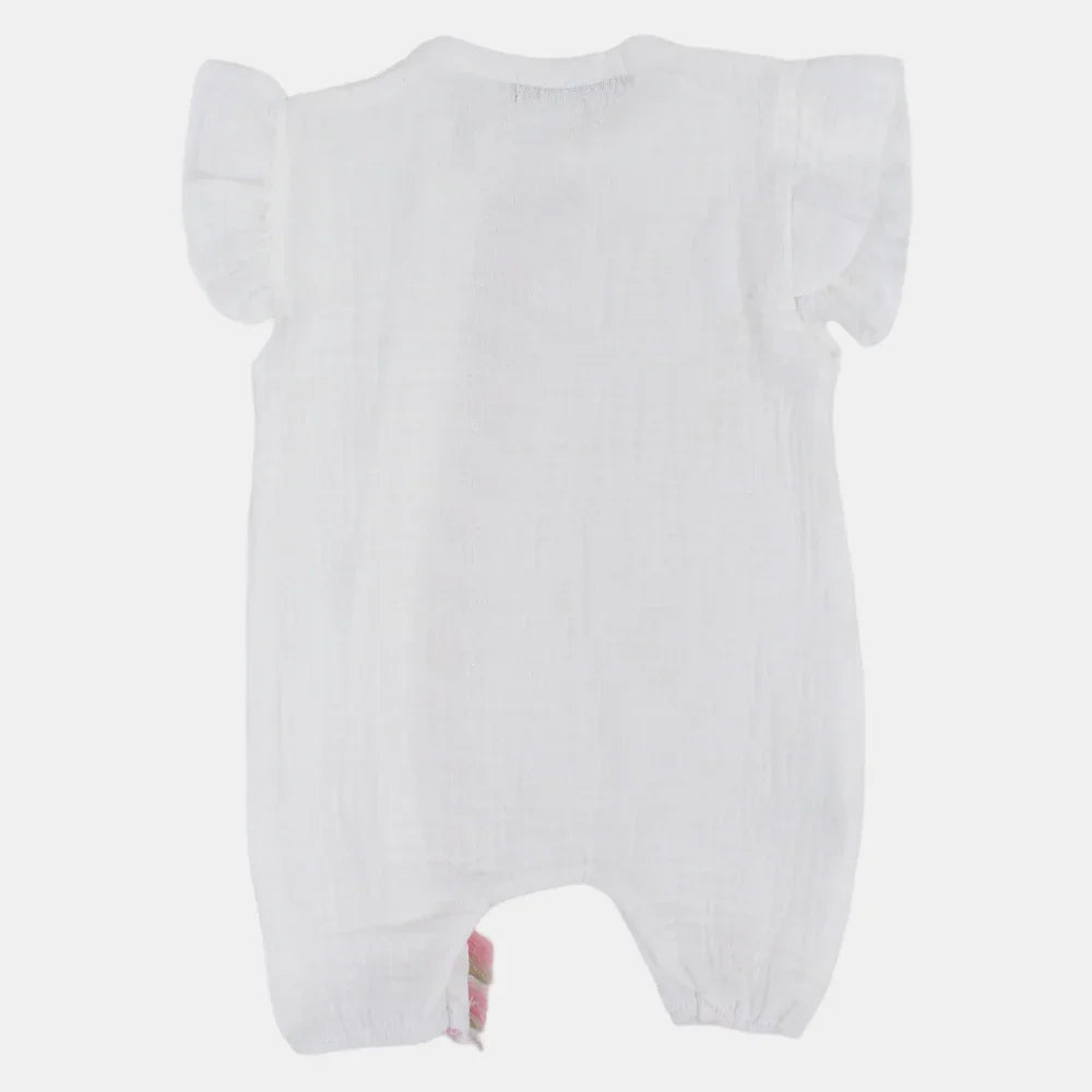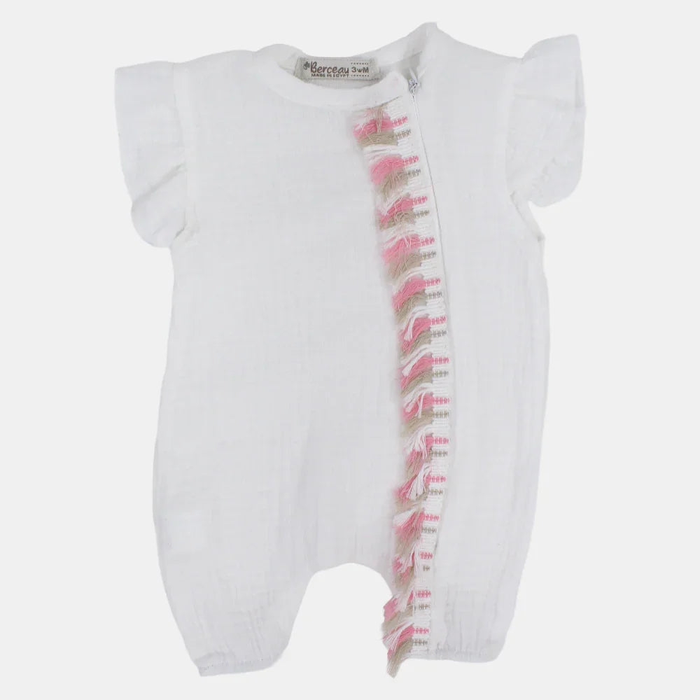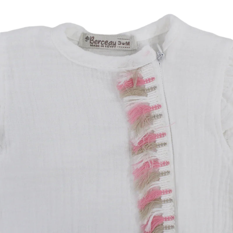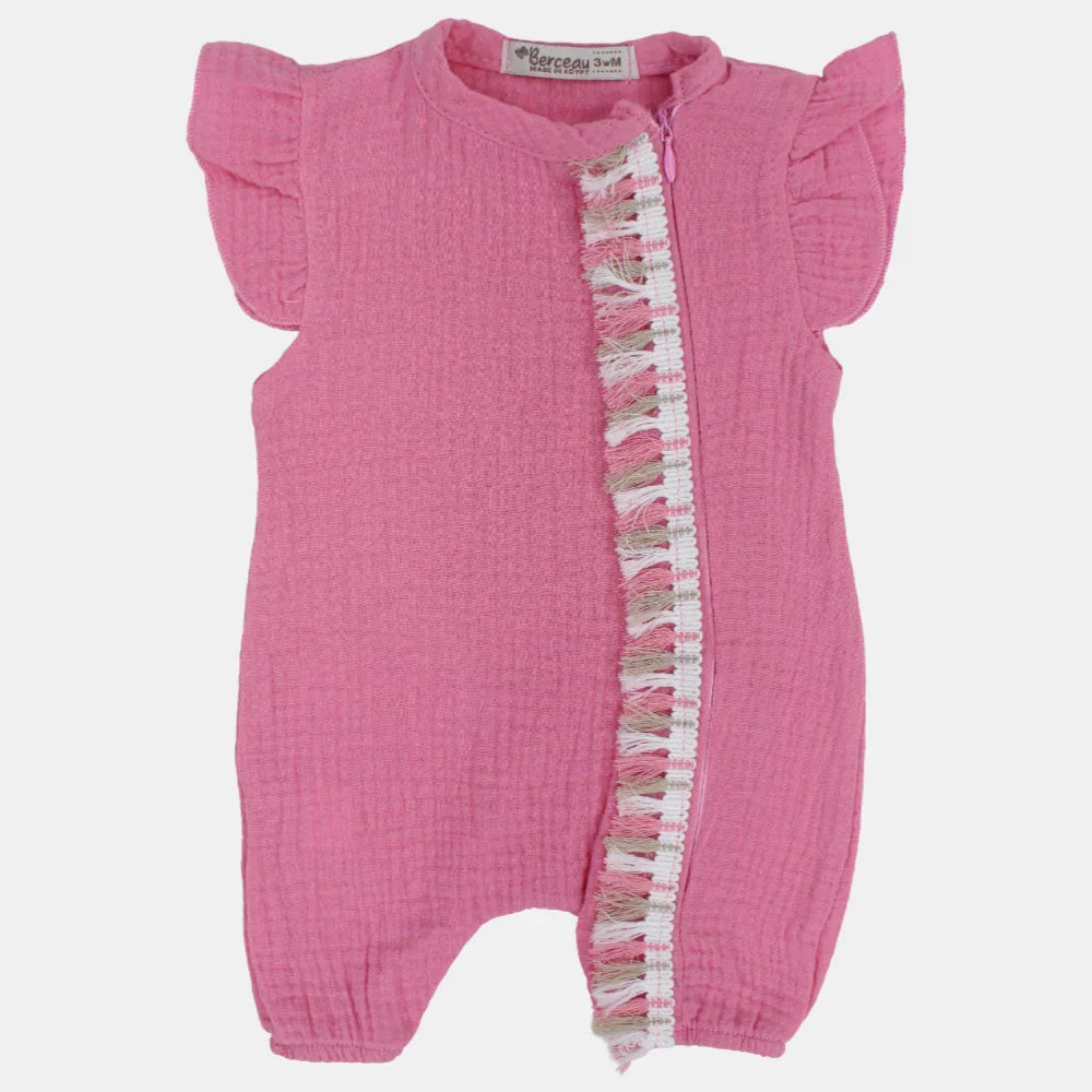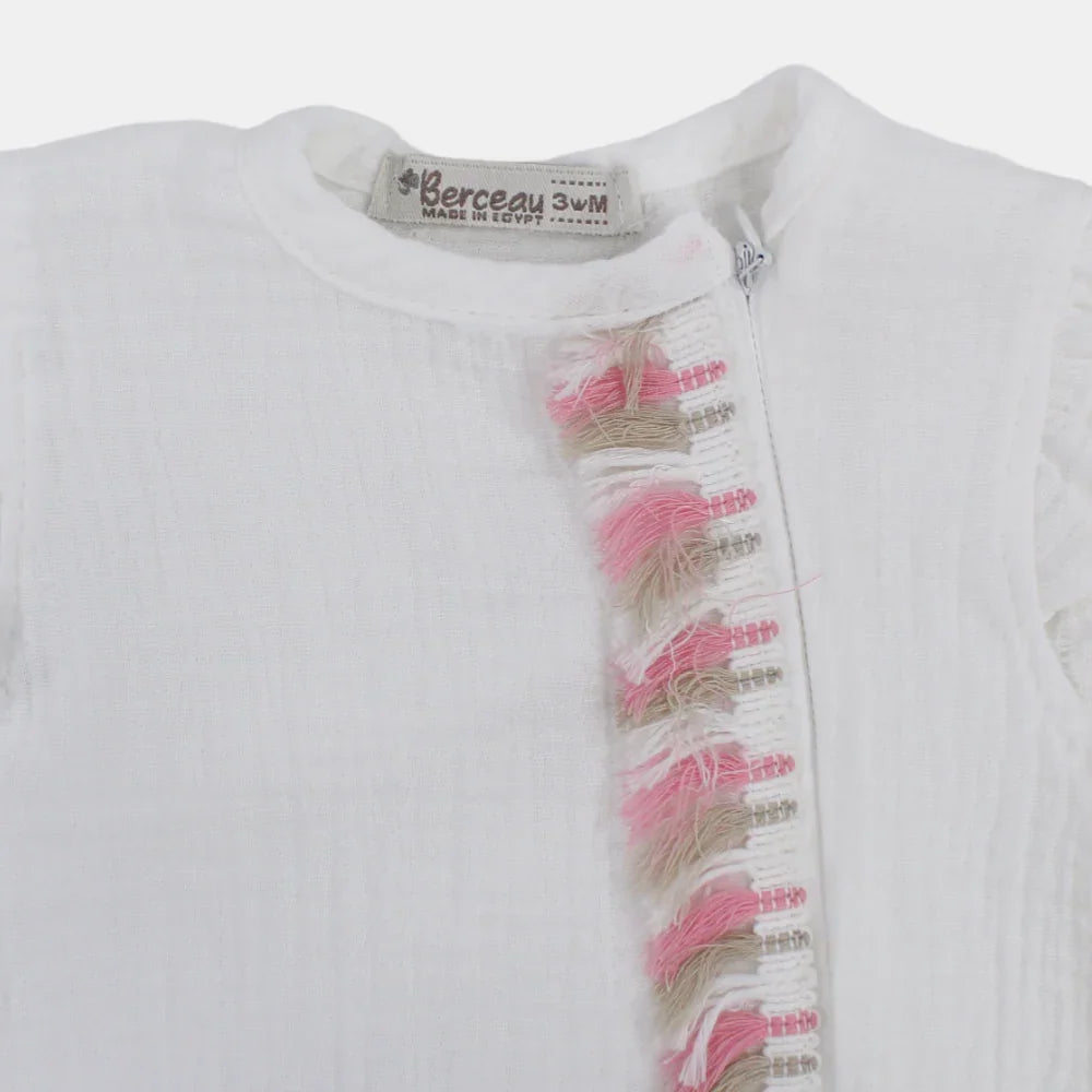 Baby Girls Linen Romper – Sleeveless with Ruffled Shoulders