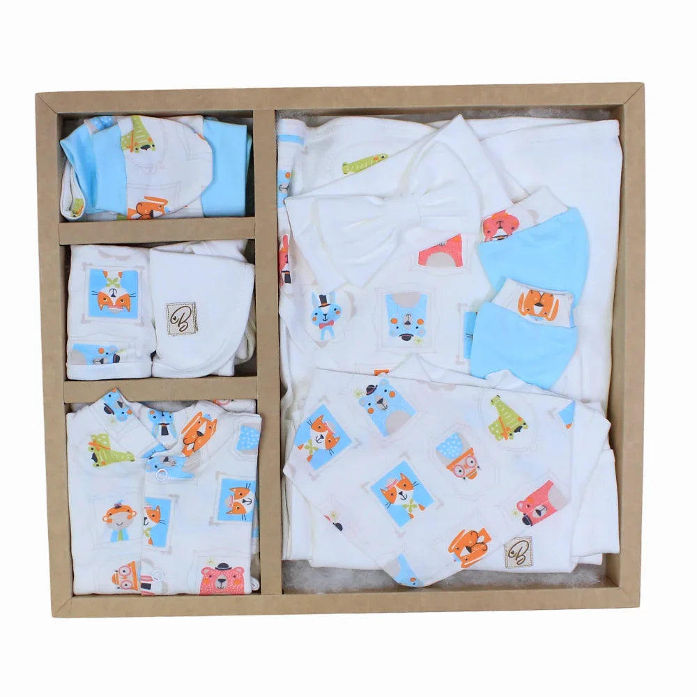 Baby Girls Cotton Clothes Gift Box – Off-White with Animal Faces