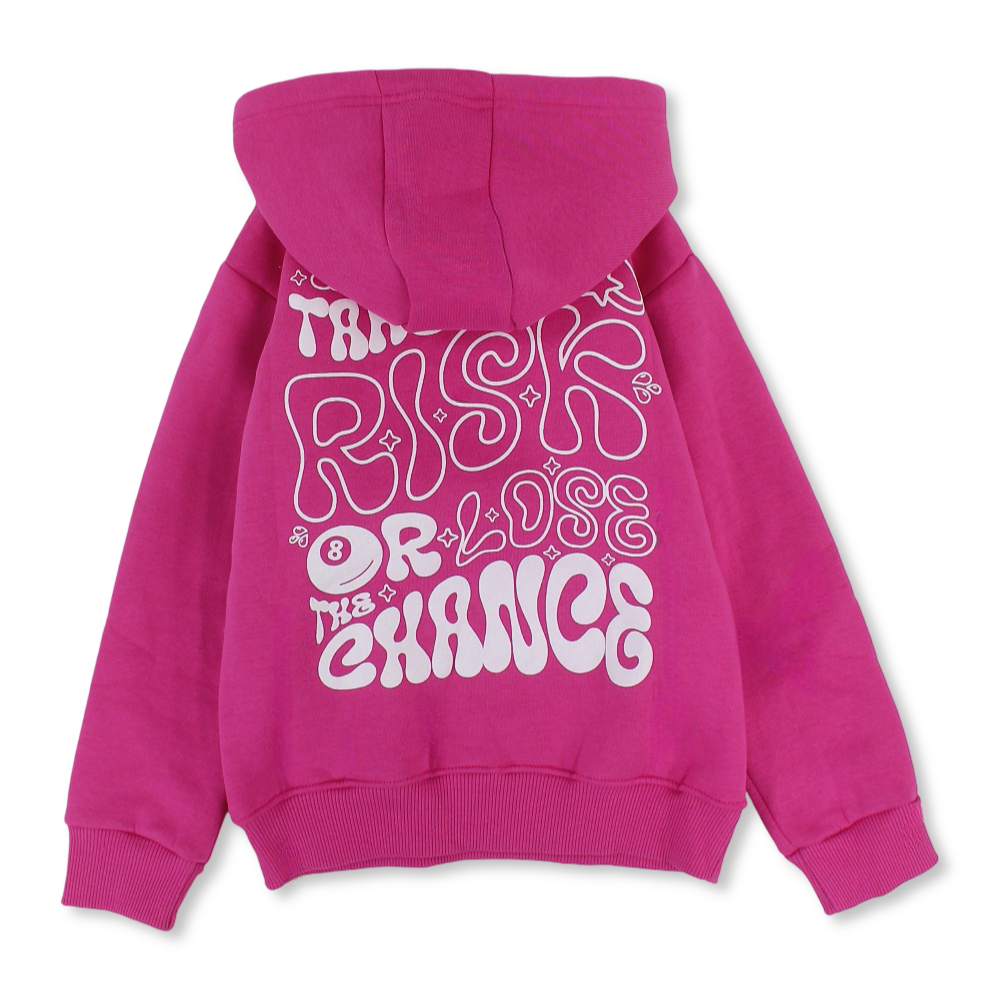 Girls Cotton Hoodie – Fuchsia with Star Print
