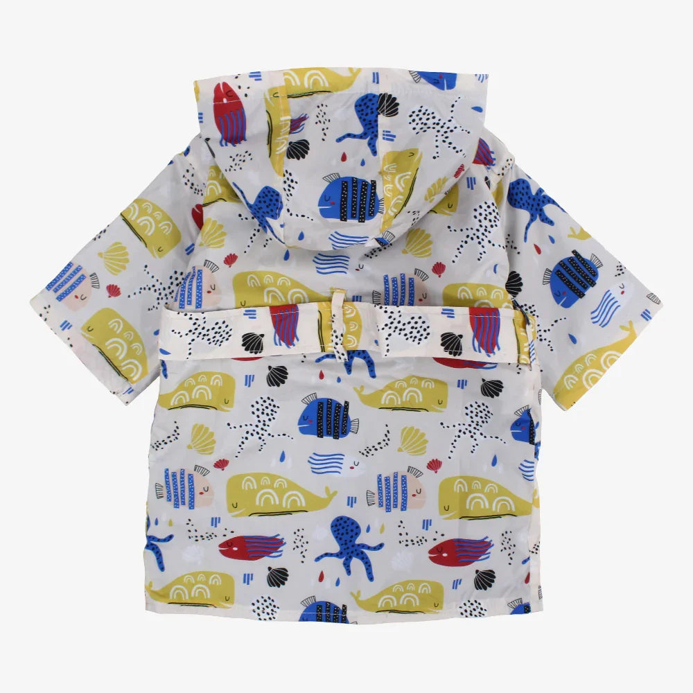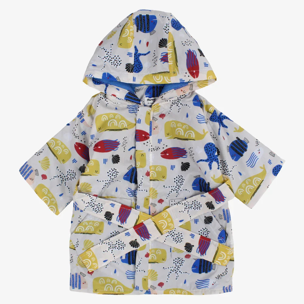 Unisex Baby Waterproof Swim Robe – Beige with Fish Prints
