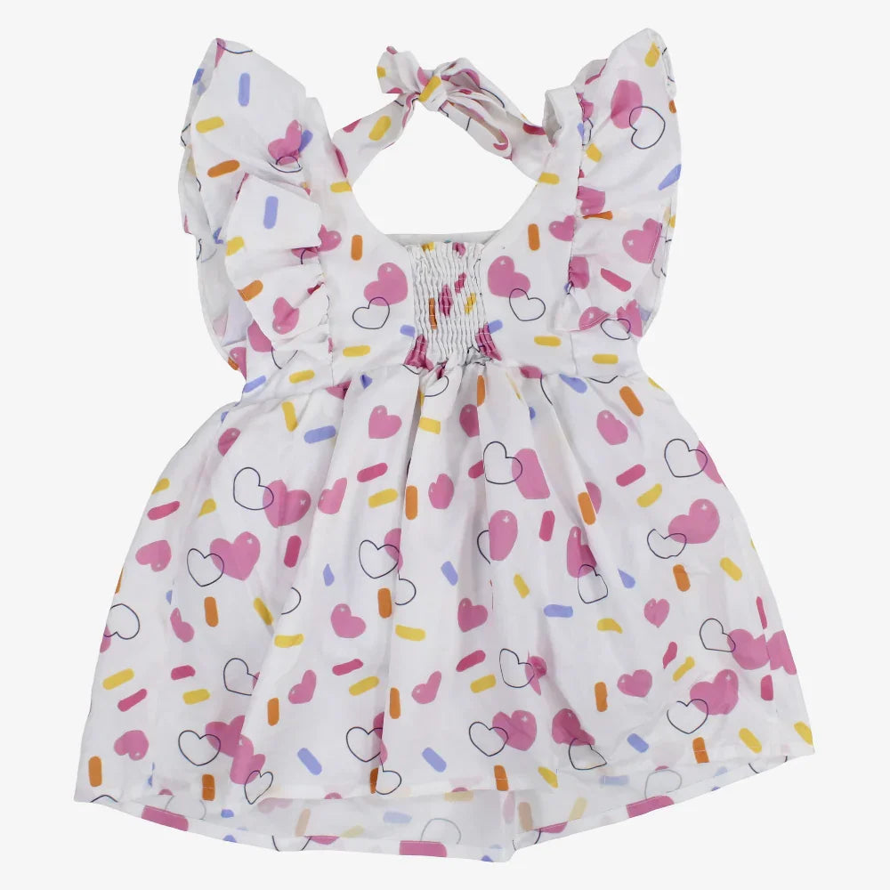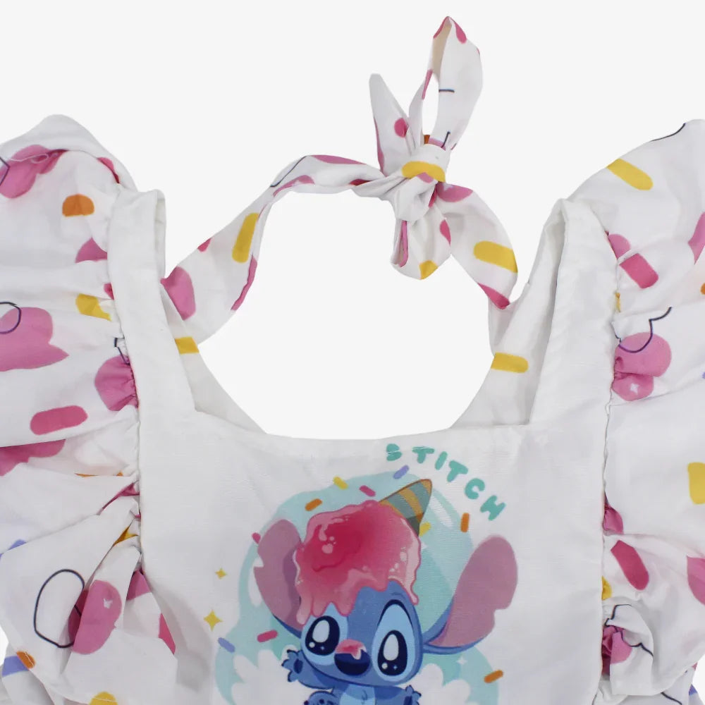 > Girls Cotton Dress – Off-white with Stitch Print – Ourkids Skip to content