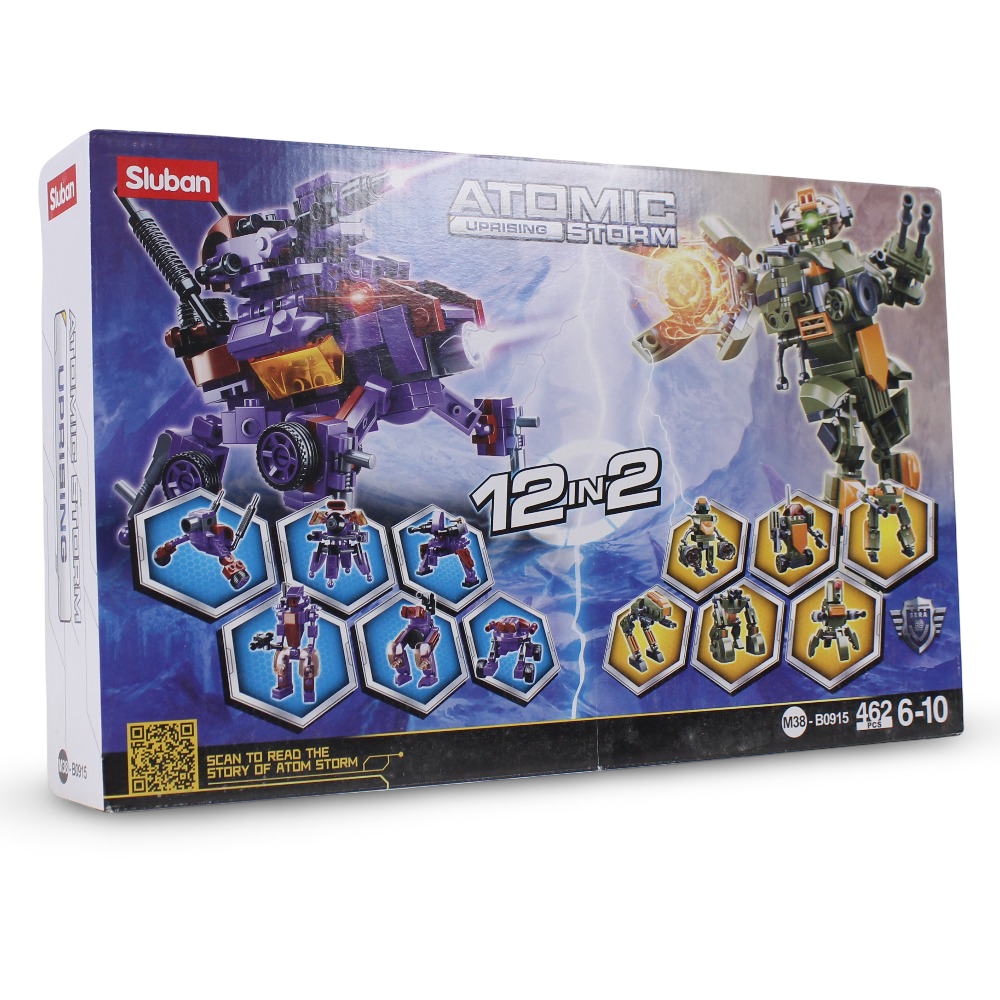 Build, battle, and imagine with the Sluban Atomic Storm 12 in 2 – 462 Pcs set.