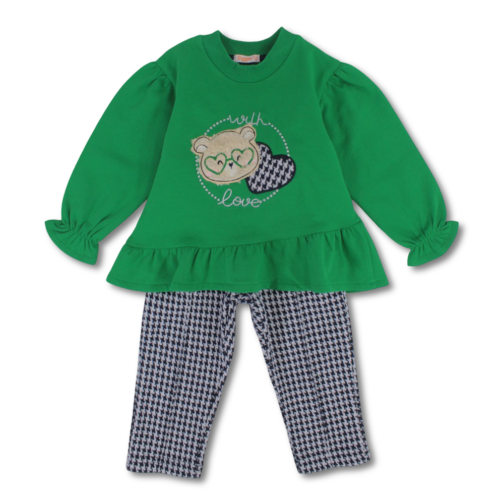 Adorable style meets everyday comfort in this Girls Cotton Two-Piece Outfit Set. Featuring a cute bear motif and matching pants, this outfit is perfect for playdates, outings, or cozy days at home. Designed with soft, breathable cotton, it ensures comfort and ease of movement for your little one all day long.