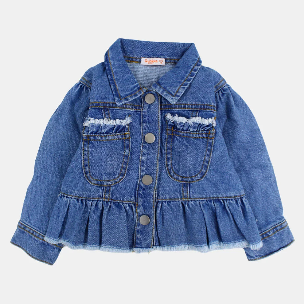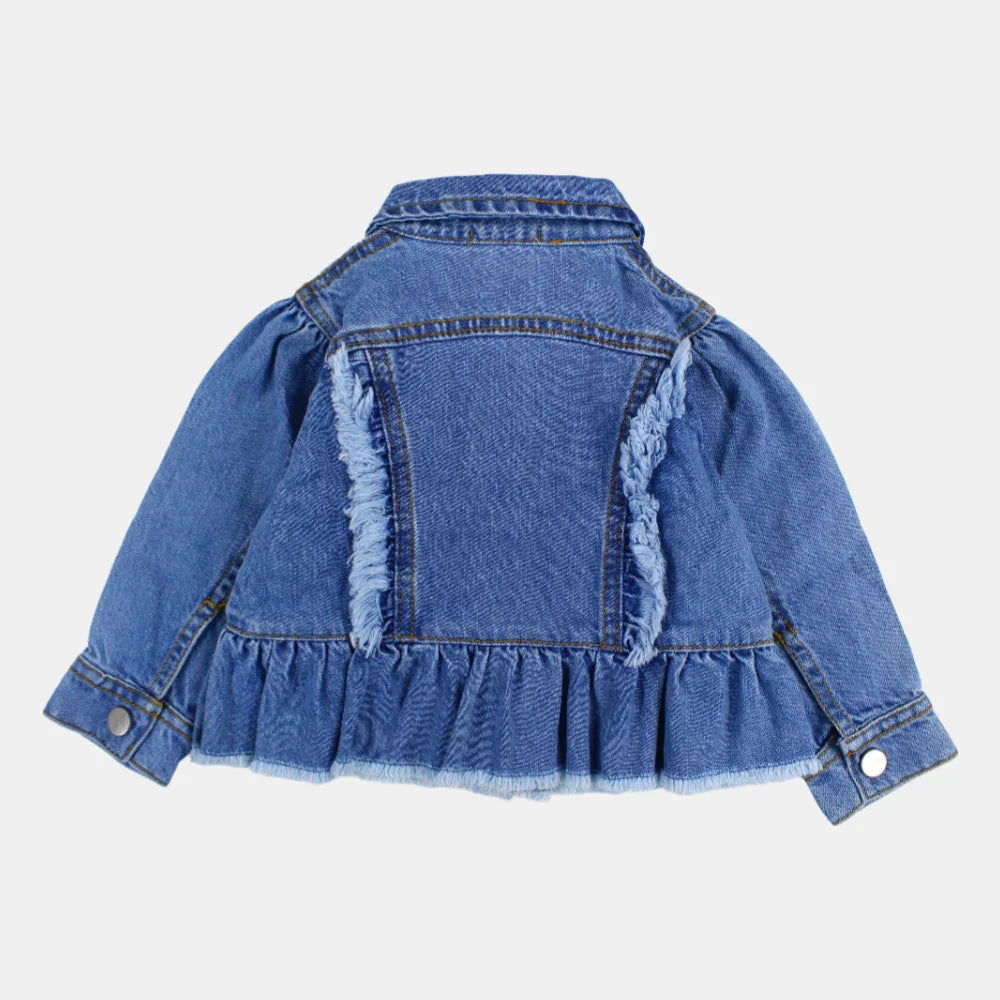 Girls Long-Sleeved Ruffled Denim Jacket