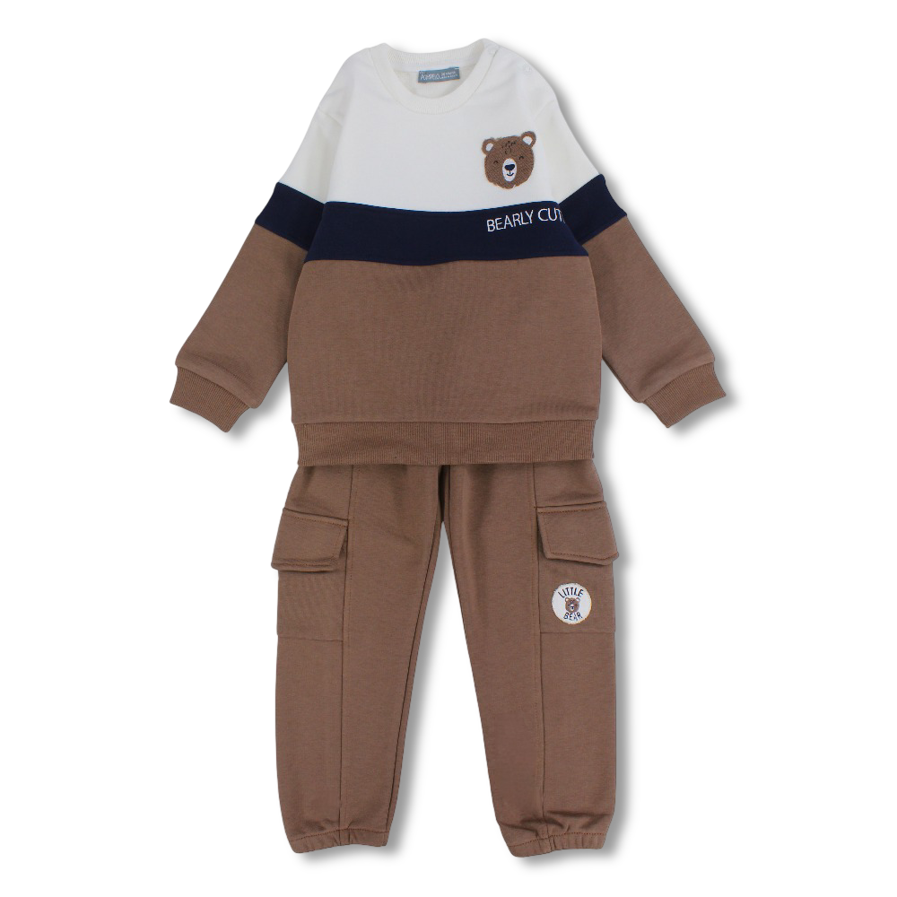 Baby Boys Cotton 2-Piece Outfit Set – Brown with Bear Design