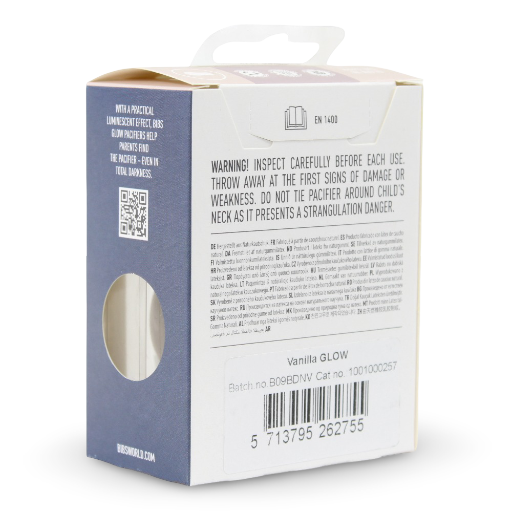 BIBS Pacifier – 1 Pack (Latex, Size 1, Vanilla GLOW)