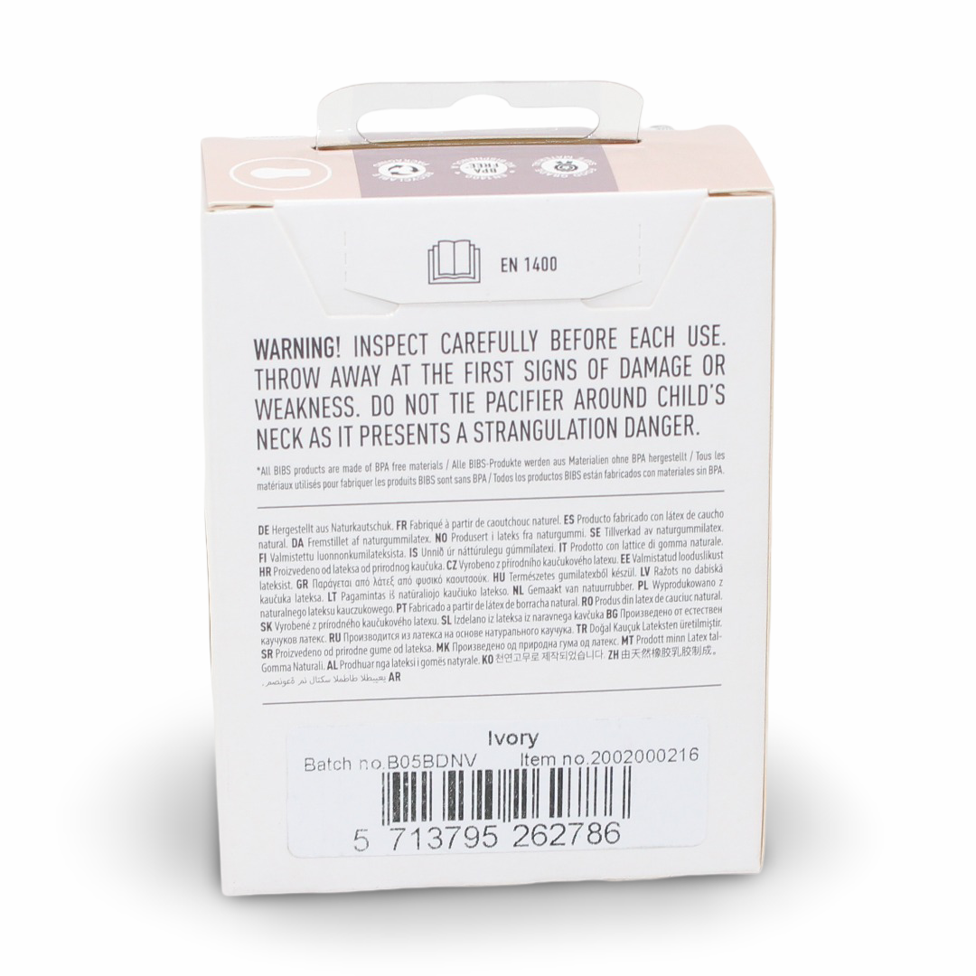 BIBS Pacifier Colour 1 Pack – Latex Size 2 Ivory